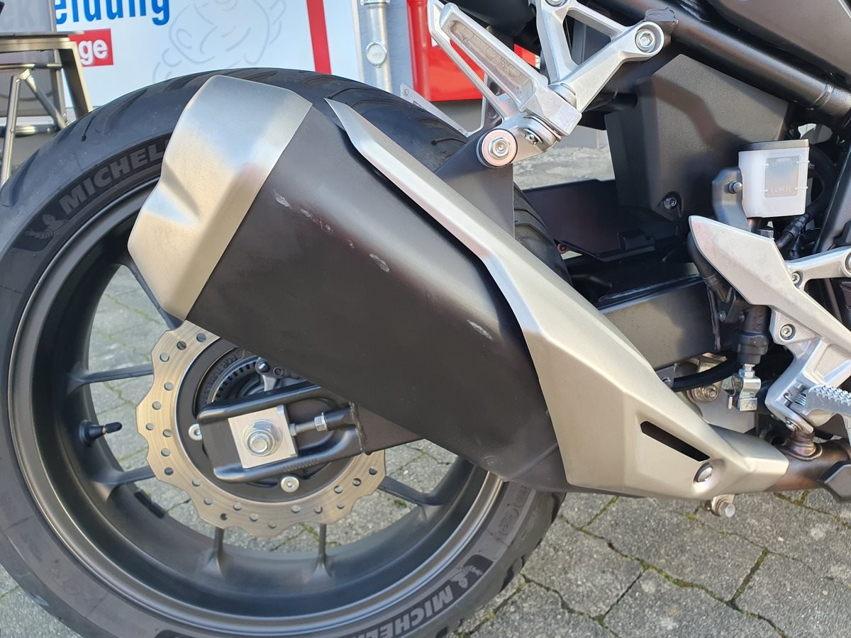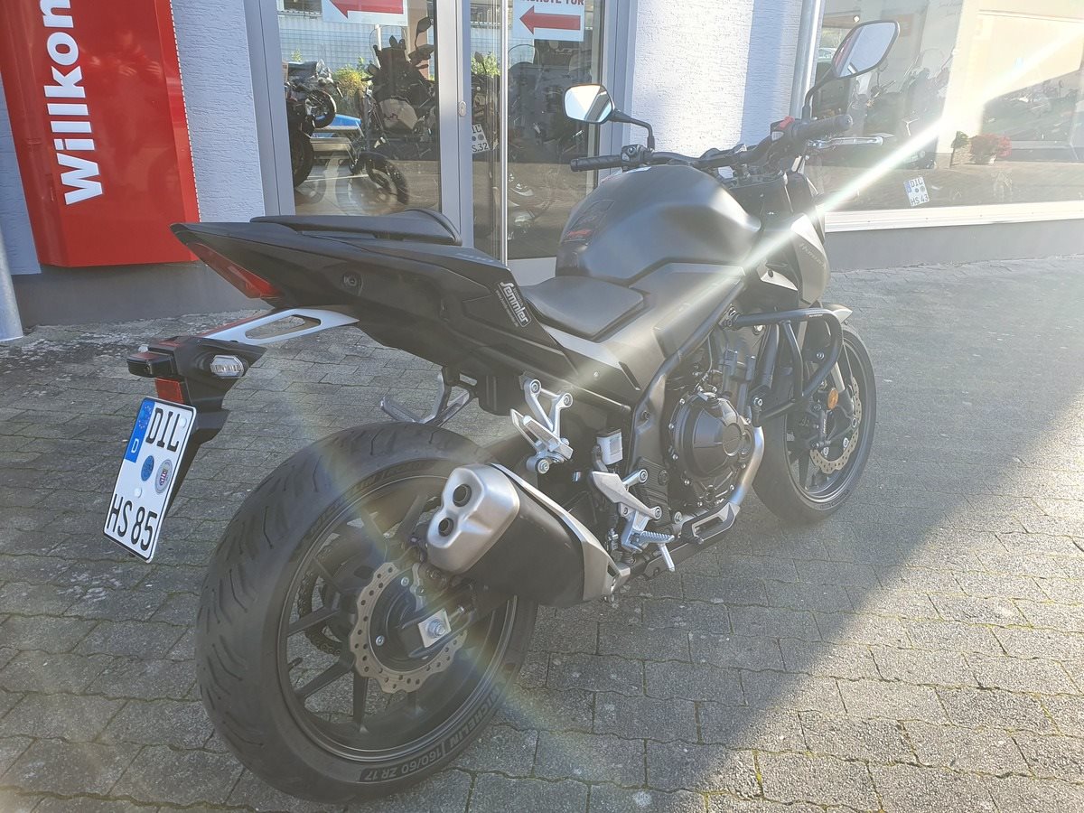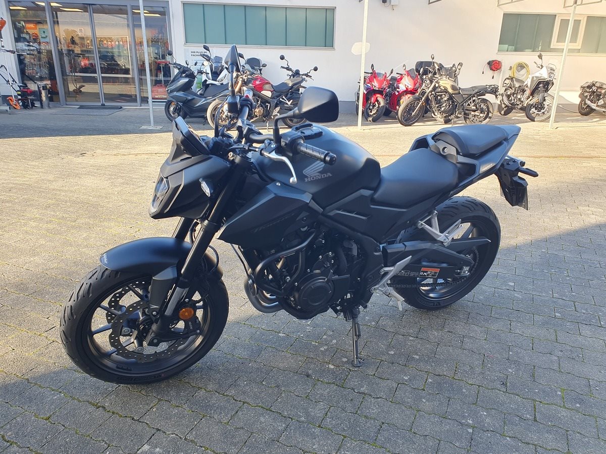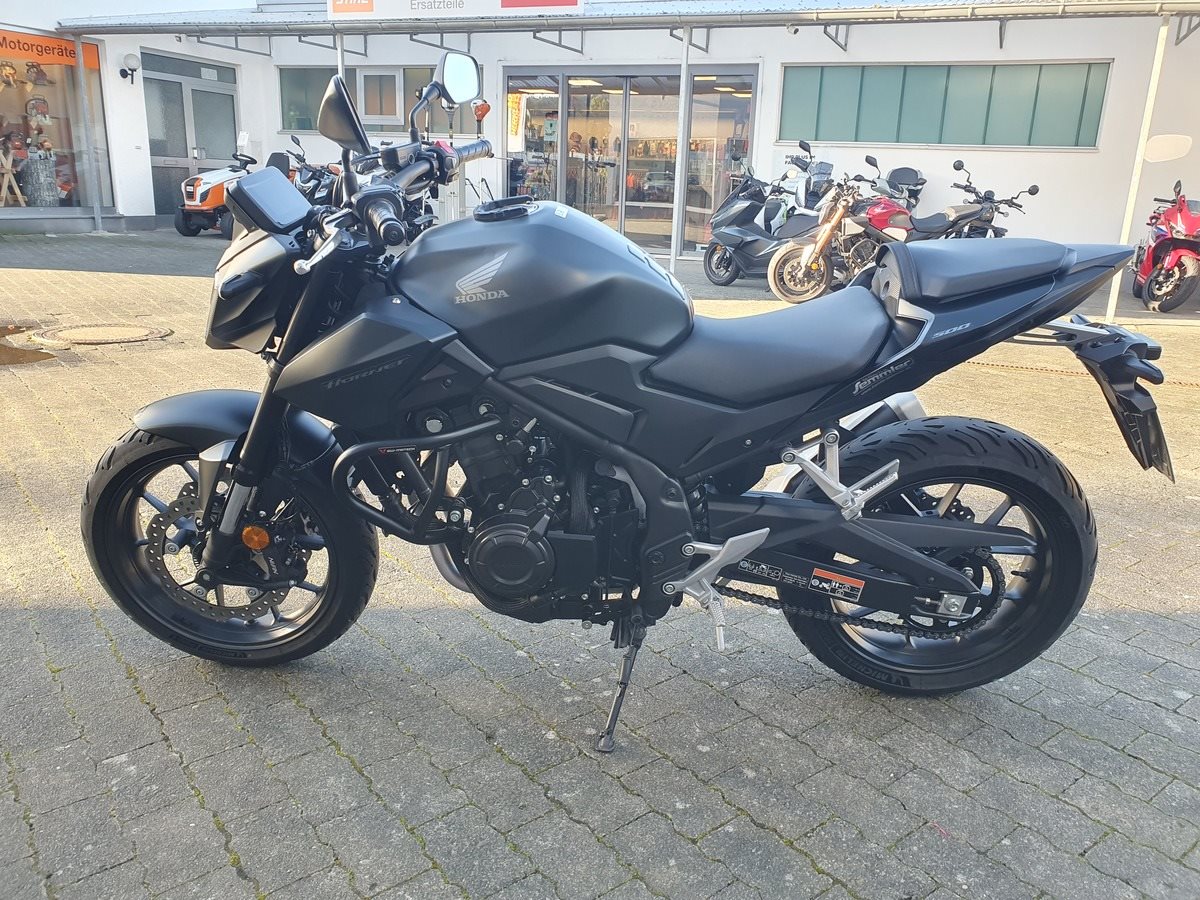Honda CB500 HORNET Vorführmaschine aus 1. Hand. Mit 5 Zoll TFT Display und Honda RoadSync-Konnektivität in Matt Gunpowder Black SOFORT VERFÜGBAR! - 48 PS Klasse passend für den A2 Führerschein. Mit SW-Motech Sturzbügeln und Pro Tankring. Die Maschine hat an der linken Seite ein paar Macken / Kratzer. Bitte den Bildern entnehmen.