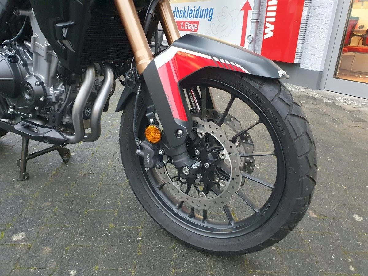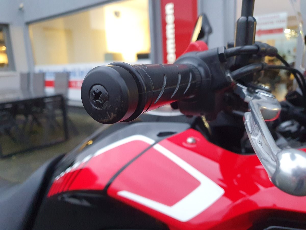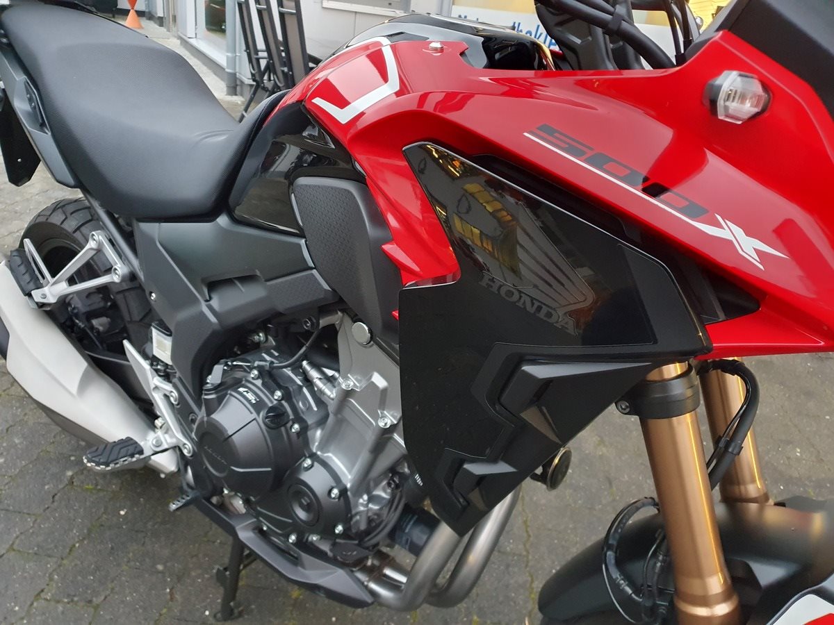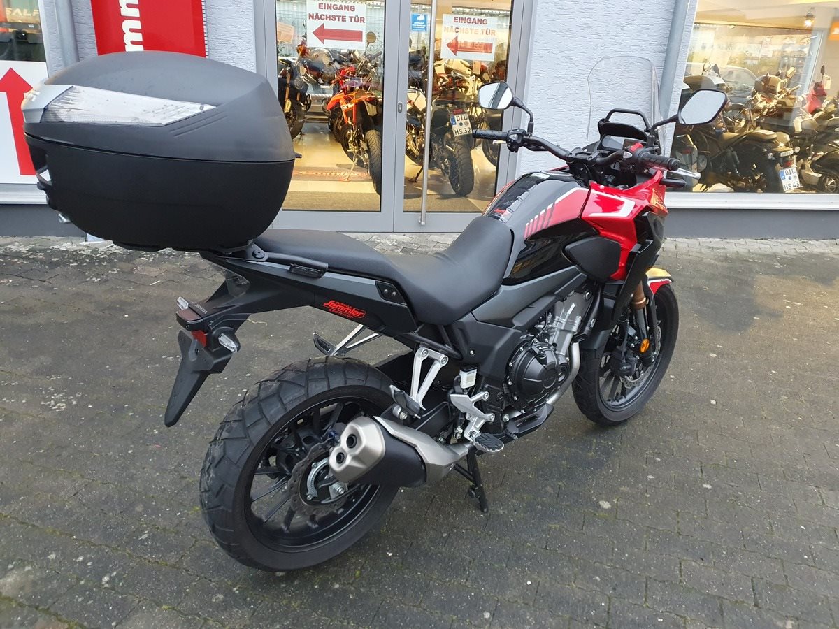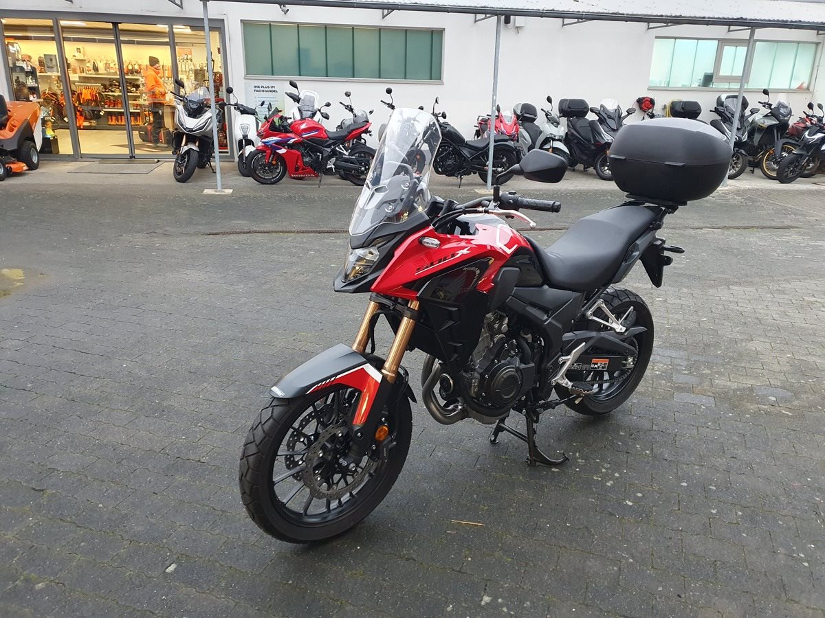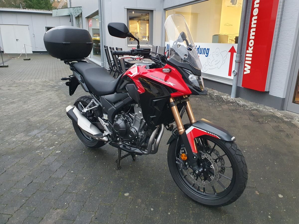Honda CB500X in grand prix red aus 1. Hand in sehr guten Zustand! Die CB hat Komfortfußrasten und einen Hauptständer von SW-Motech. Desweiteren ist eine 12 Volt Steckdose im Cockpit verbaut und ein Top-Case montiert. Die Maschine ist Scheckheftgepflegt, hat gerade von uns einen frischen Service bekommen und wird mit einem Jahr Gewährleistung verkauft. An der rechten Seite sind ein paar kleine Kratzer an Auspuff, Fußraste und Lenkerende zu sehen, da der Vorbesitzer an seiner Garagenwand hängen geblieben ist. Bitte den Bildern entnehmen.