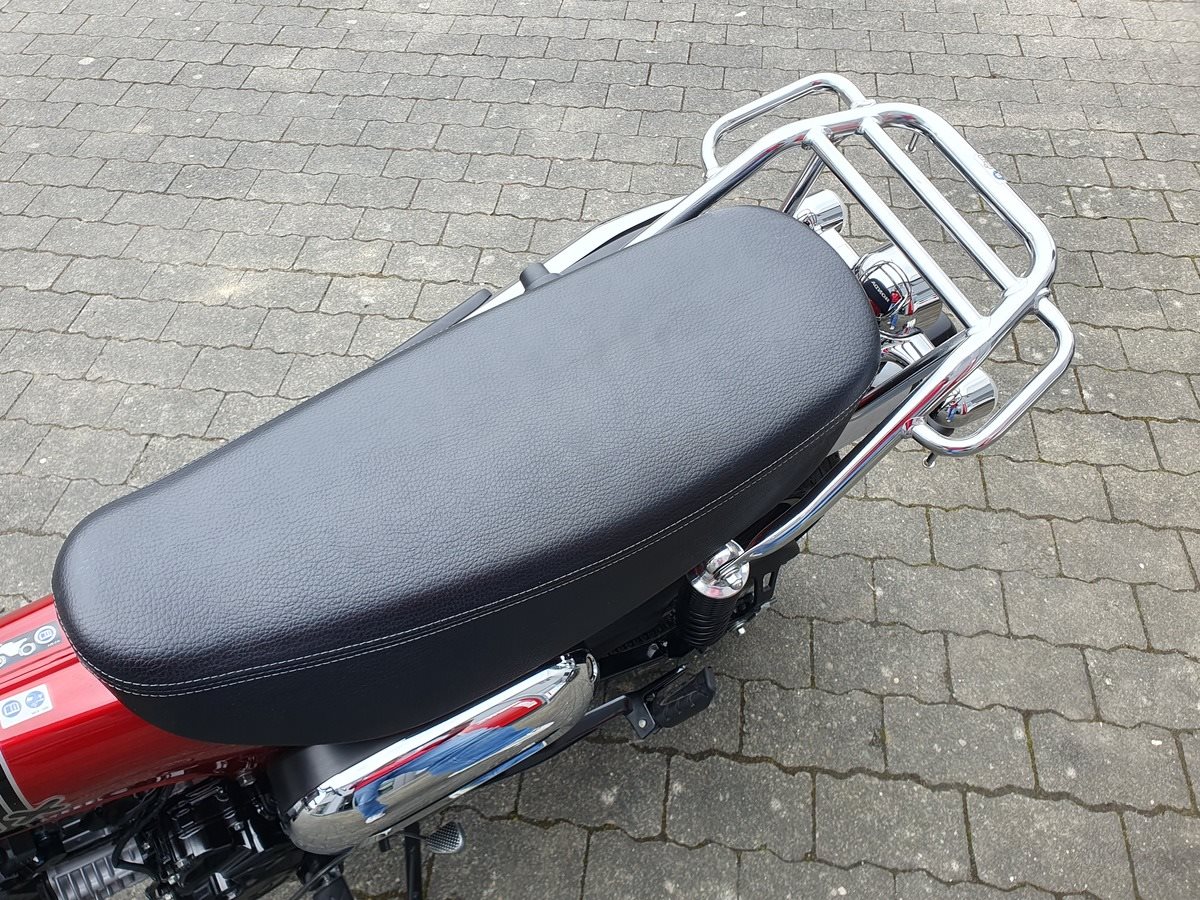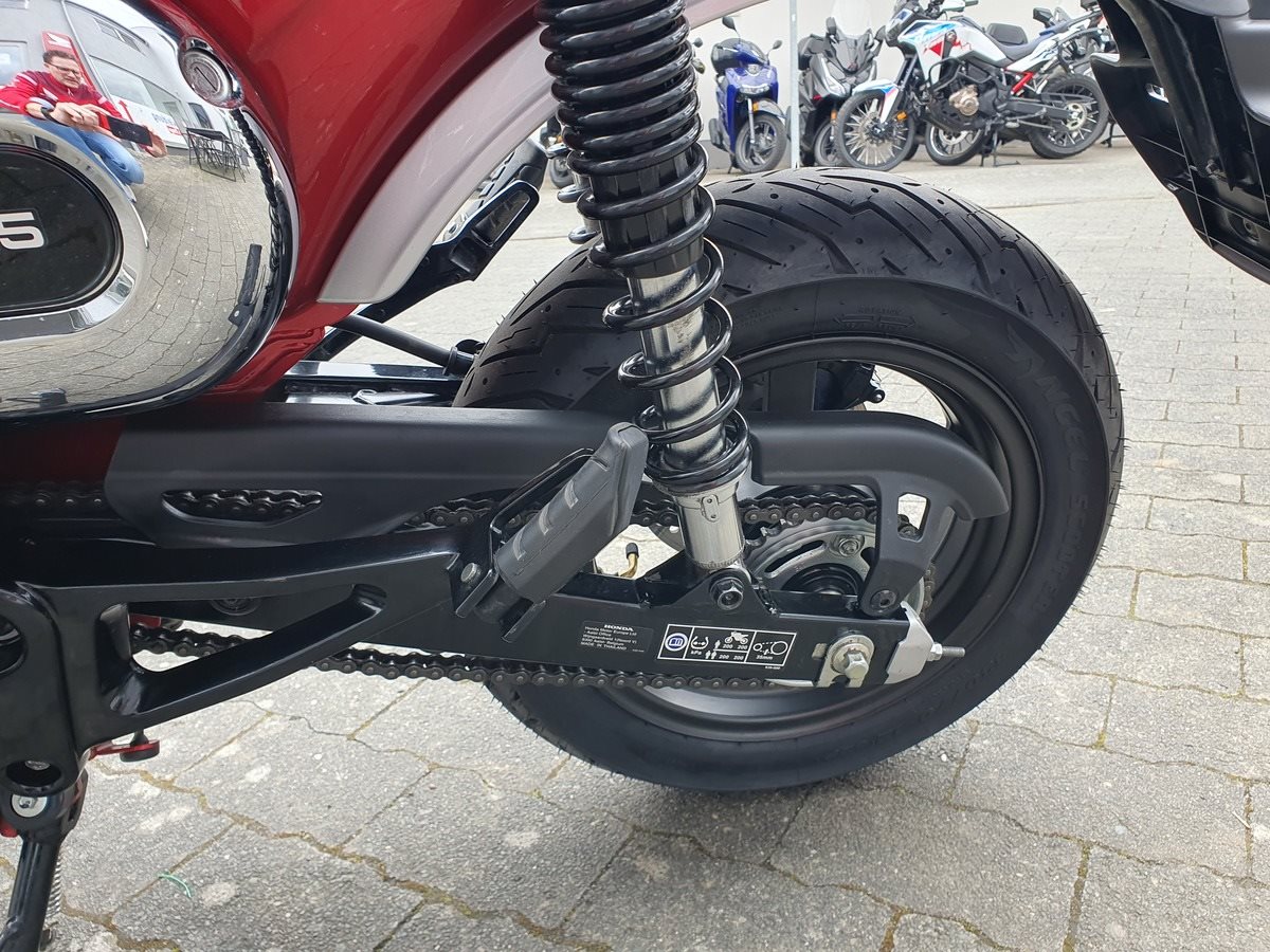 Honda Dax ST125 in Pearl Nebula Red mit Gepäckträger. Die 6.000 Km Inspektion haben wir durchgeführt und die Dax hat einen Neuen Reifen hinten bekommen.