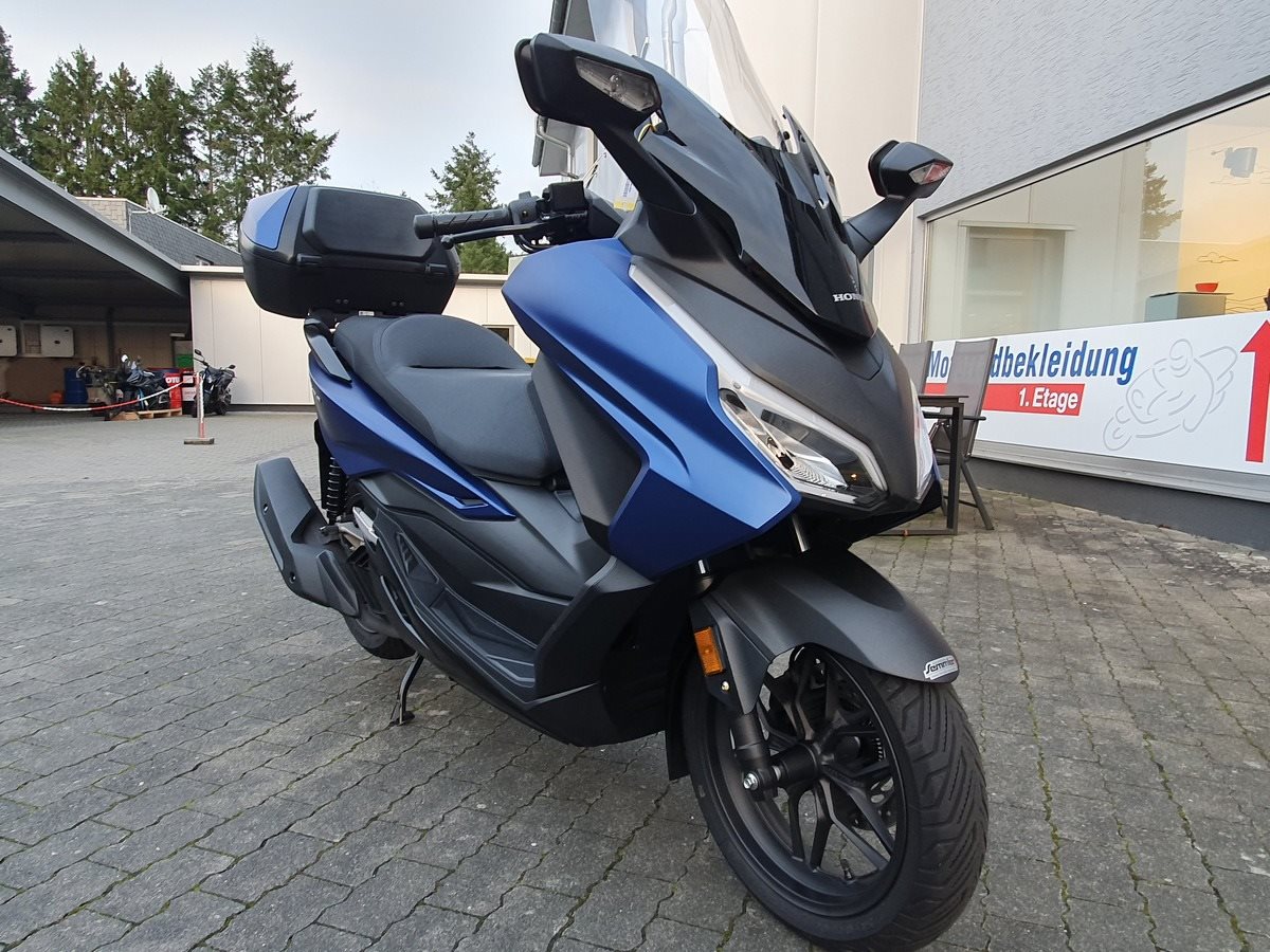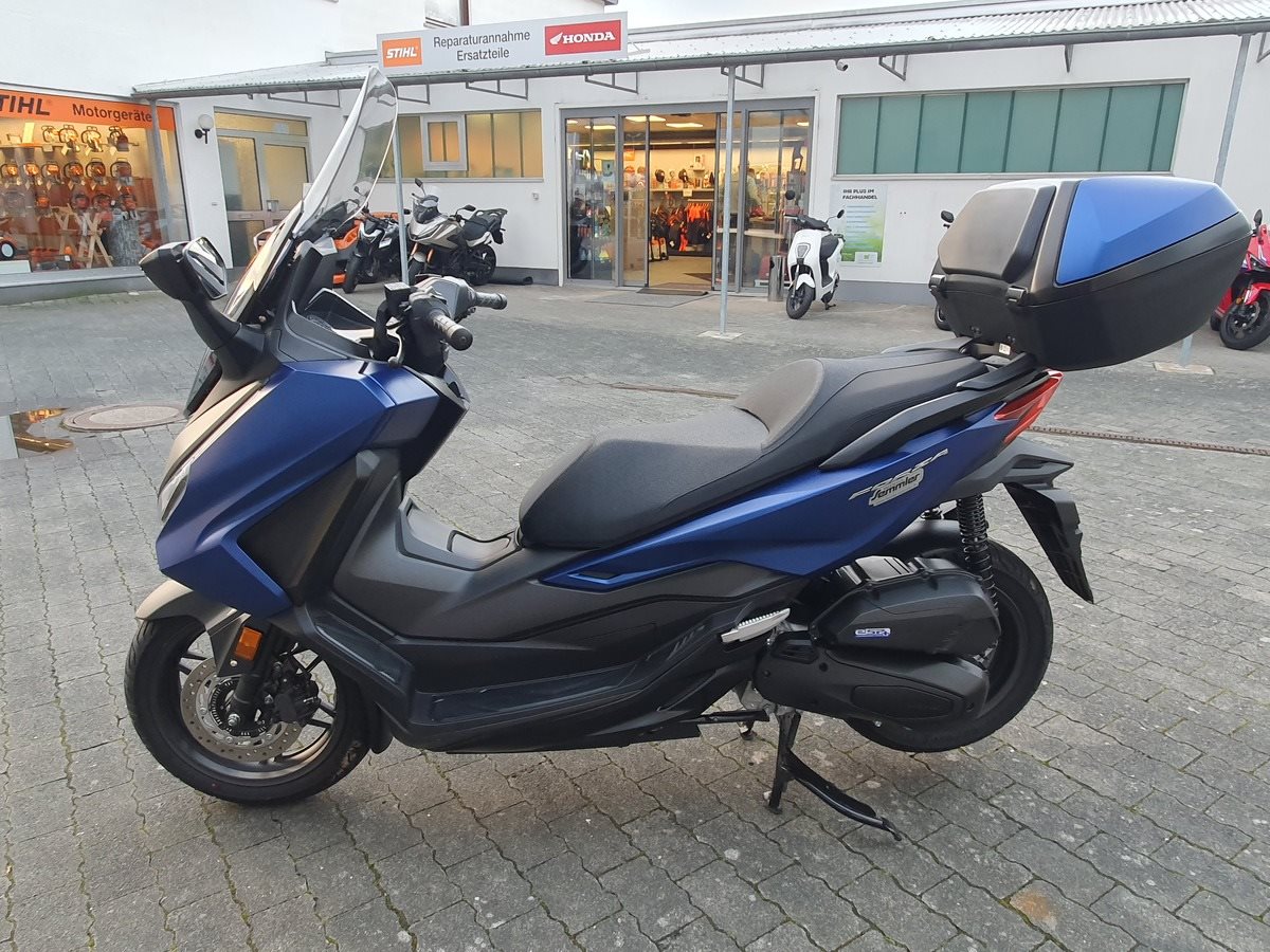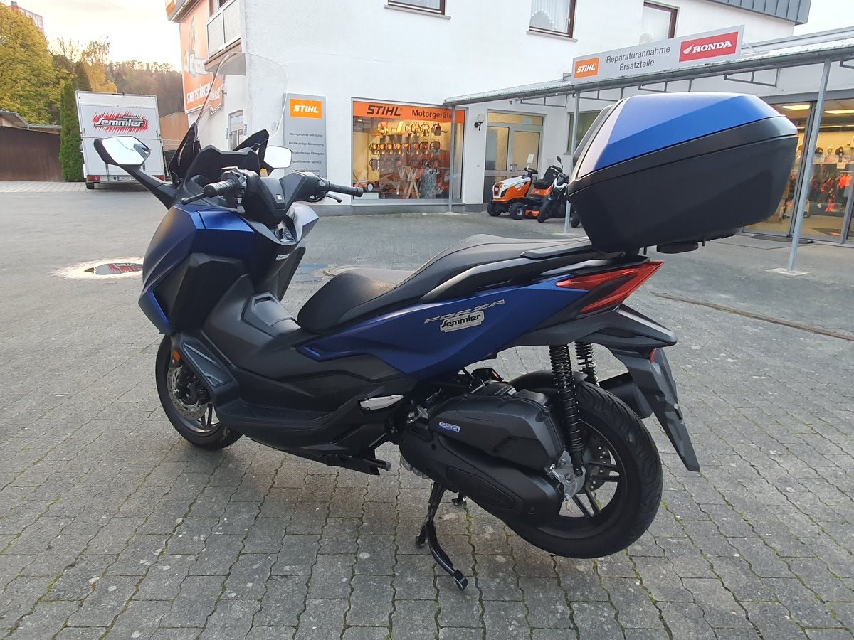 Honda Forza 125 NSS 125 aus 1. Hand in matt blau. Der Forza hat ABS und wird Seienmäßig mit Smart Key Top Case geliefert. Der Roller ist in einwandfreiem Zustand und Scheckheftgepflegt. Er hat eine frische Inspektion bekommen und hat noch TÜV & Werksgarantie bis 08/2026.