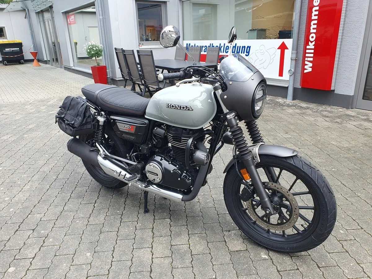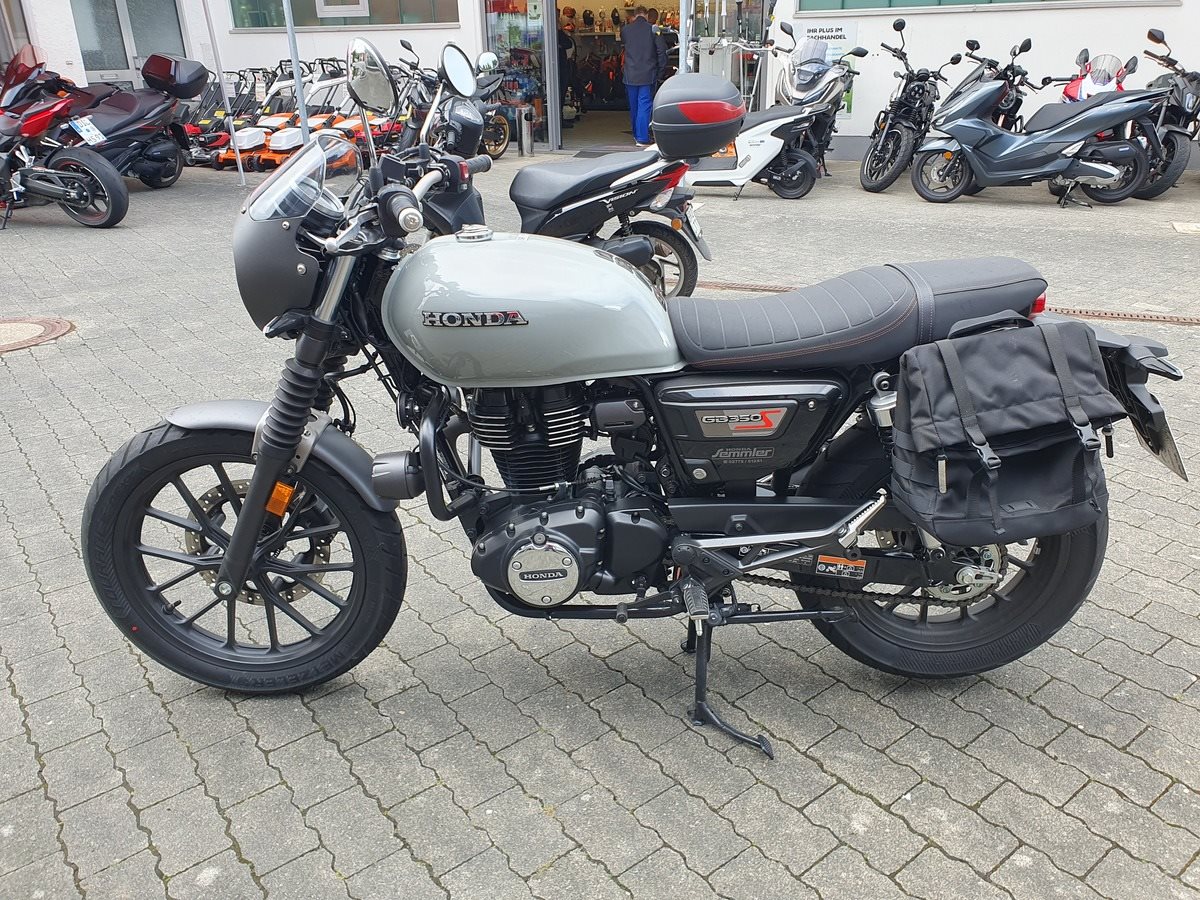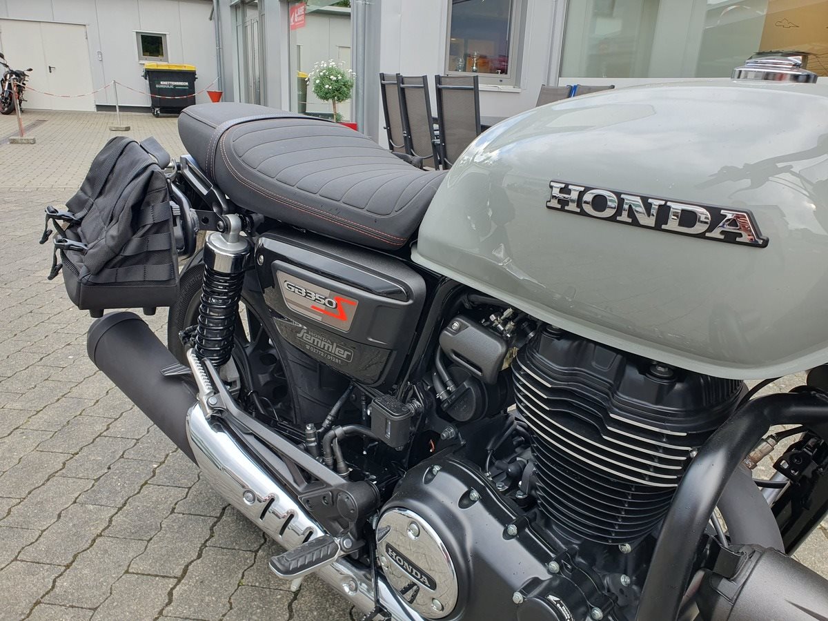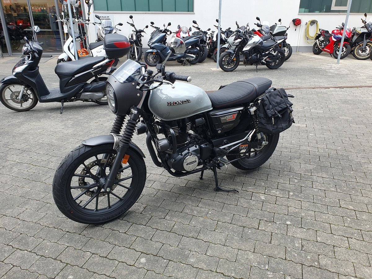 Honda GB 350 S Vorführfahrzeug mit nur 1.800 Kilometer und viel Zubehör ab sofort frei zum Verkauf! Wir haben die GB mit Lichtmaske, Satteltaschen, Dekorbügel mit Nebelscheinwerfern und einer doppelten USB Buchse am Lenker ausgestattet. Wir haben die 1.000KM Inspektion durchgeführt und bei Verkauf bekommt sie noch Neuen TÜV.