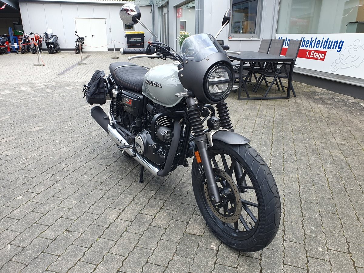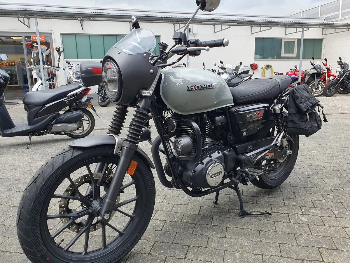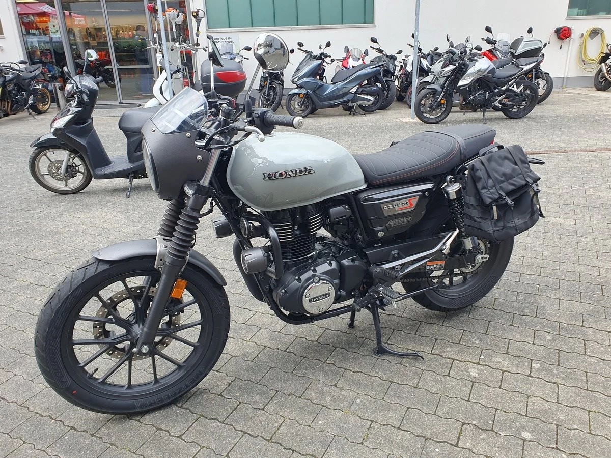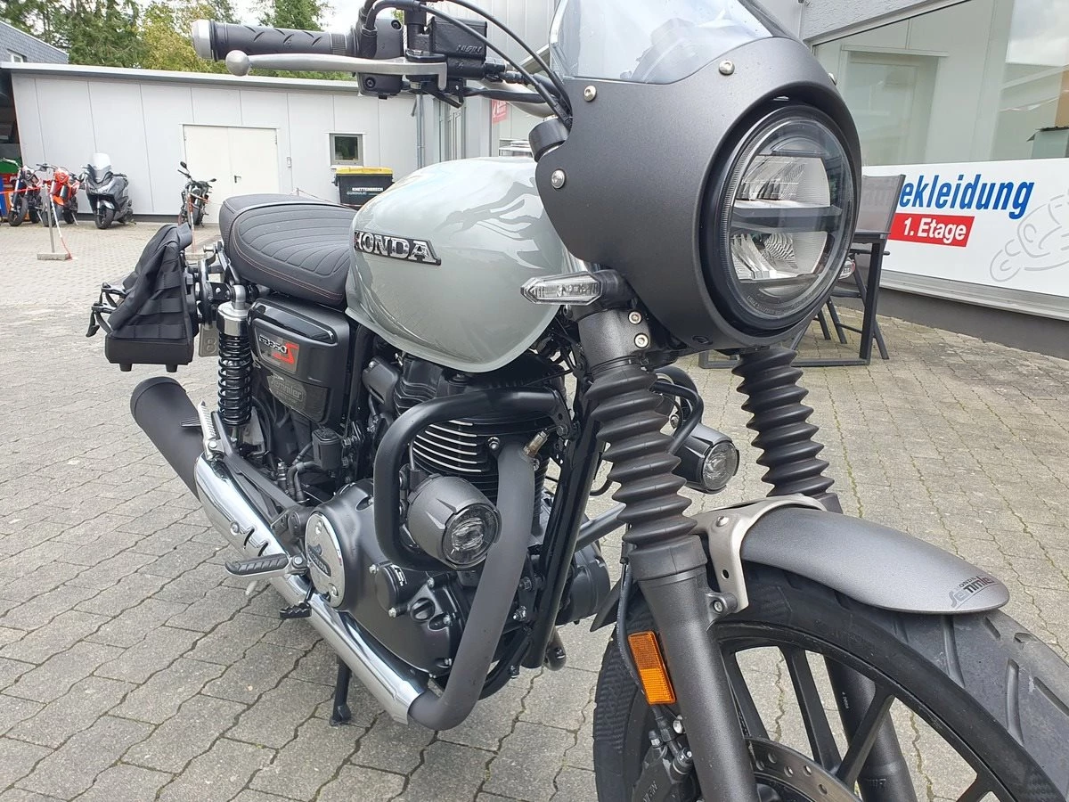 Honda GB 350 S Vorführfahrzeug mit nur 1.800 Kilometer und viel Zubehör ab sofort frei zum Verkauf! Wir haben die GB mit Lichtmaske, Satteltaschen, Dekorbügel mit Nebelscheinwerfern und einer doppelten USB Buchse am Lenker ausgestattet. Wir haben die 1.000KM Inspektion durchgeführt und bei Verkauf bekommt sie noch Neuen TÜV.