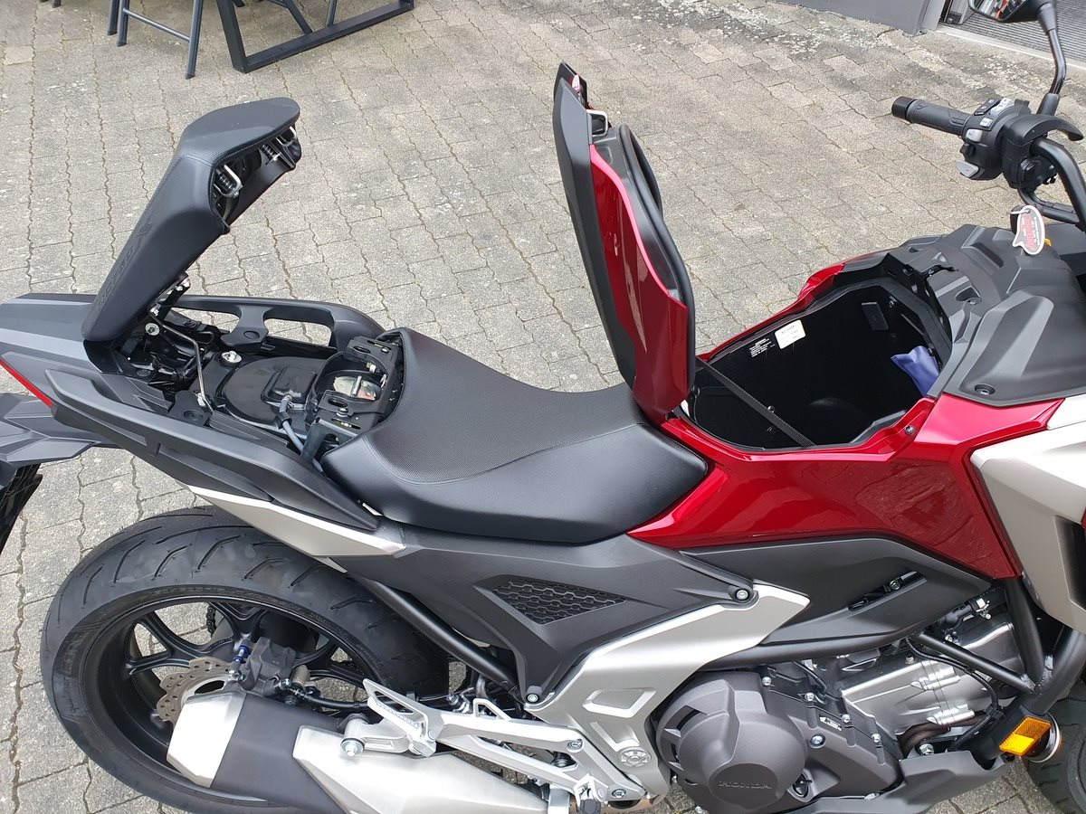 Honda NC 750 X DCT aus 1. Hand in Candy Chromophere Red. Die Maschine wurde bei uns gekauft, ist Scheckheftgepflegt und hat gerade eine frische Inspektion und Neue Reifen bekommen. Die Maschine ist dem Vorbesitzer auf die rechte Seite umgefallen. Die Teile wurde Teilweise erneuert. Leichte spuren sind noch zu sehen. Bitte die Bilder schauen. Die Maschine hat noch Werksgarantie bis 07/2026 welche auch noch mal bis zu 3 Jahre verlängert werden kann. TÜV bis 07/2026.