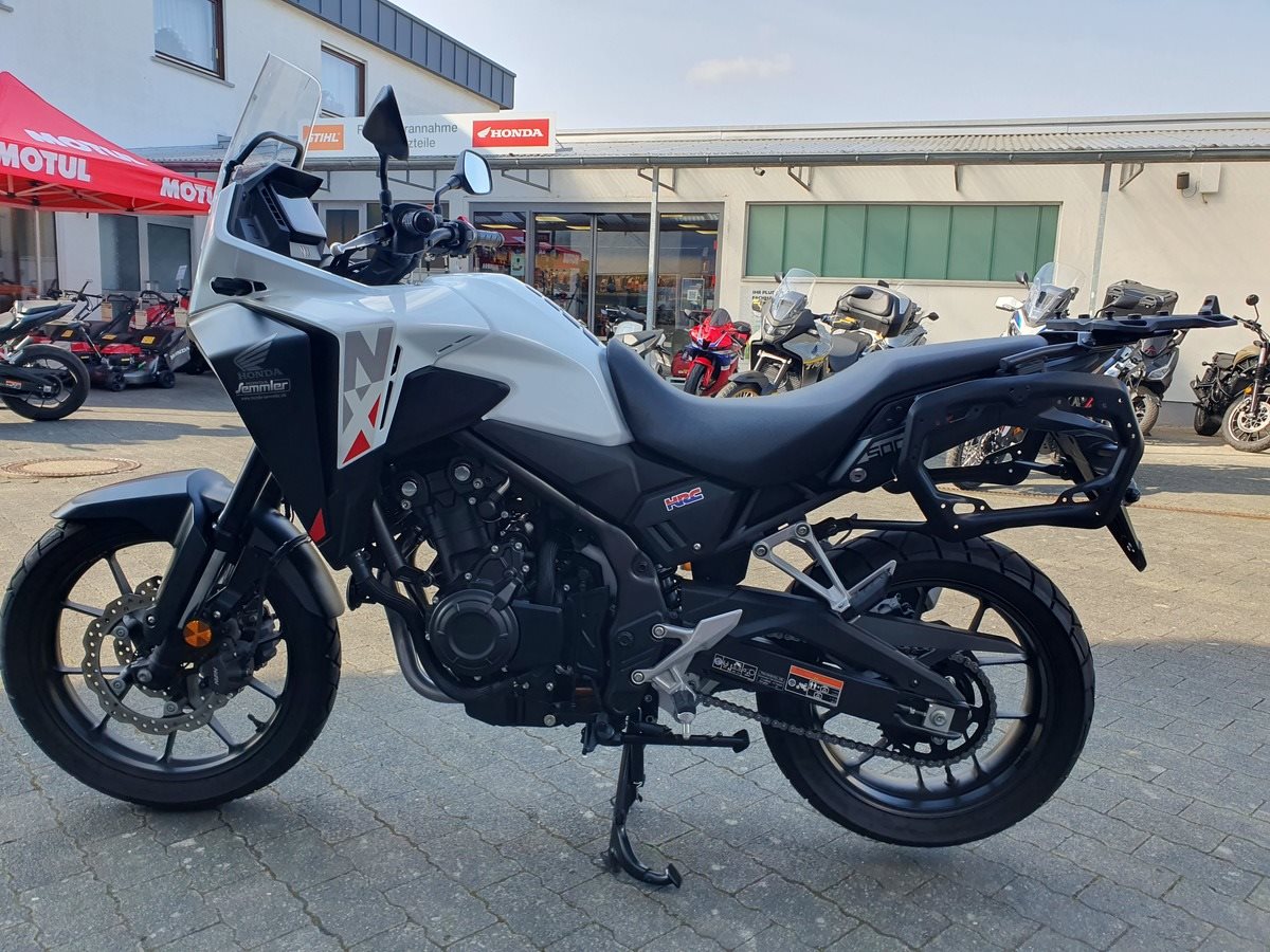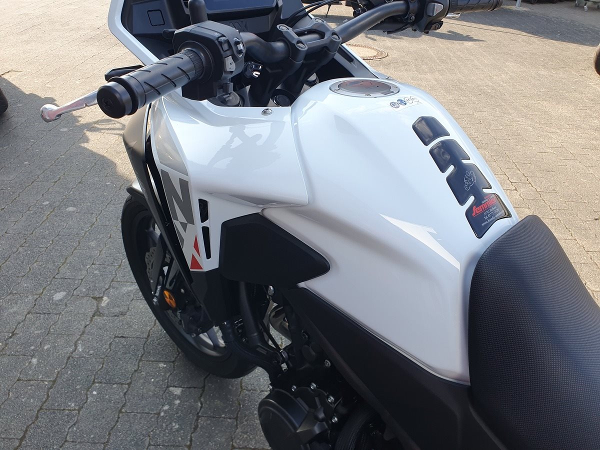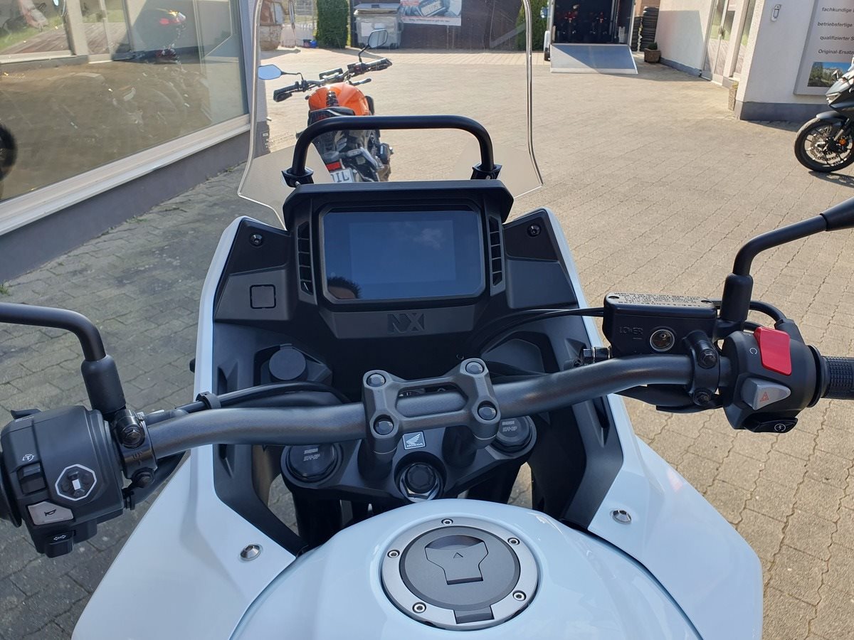 Honda NX500 MY2024 mit 5 Zoll TFT Display und Honda RoadSync-Konnektivität in Horizon White aus 1. Hand. 48 PS Klasse passend für den A2 Führerschein. Die NX500 ist Scheckheftgepflegt und wurde zusätzlich mit einem Hauptständer, einer USB Dose im Cockpit und SW-Motech Pro Seitenträgern und Street Rack mit Adapterplatte ausgestattet. Wir haben einen Service durchgeführt und der TÜV wird bei Verkauf neu gemacht.