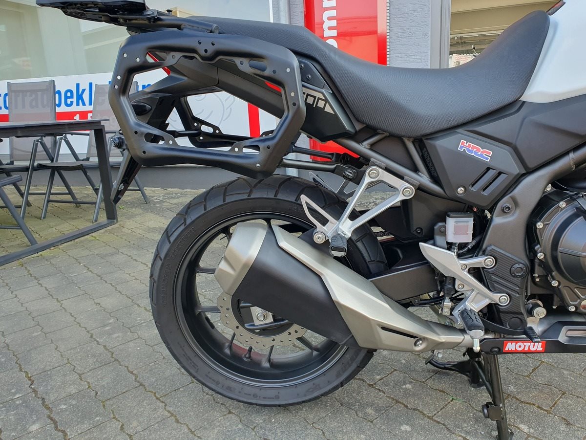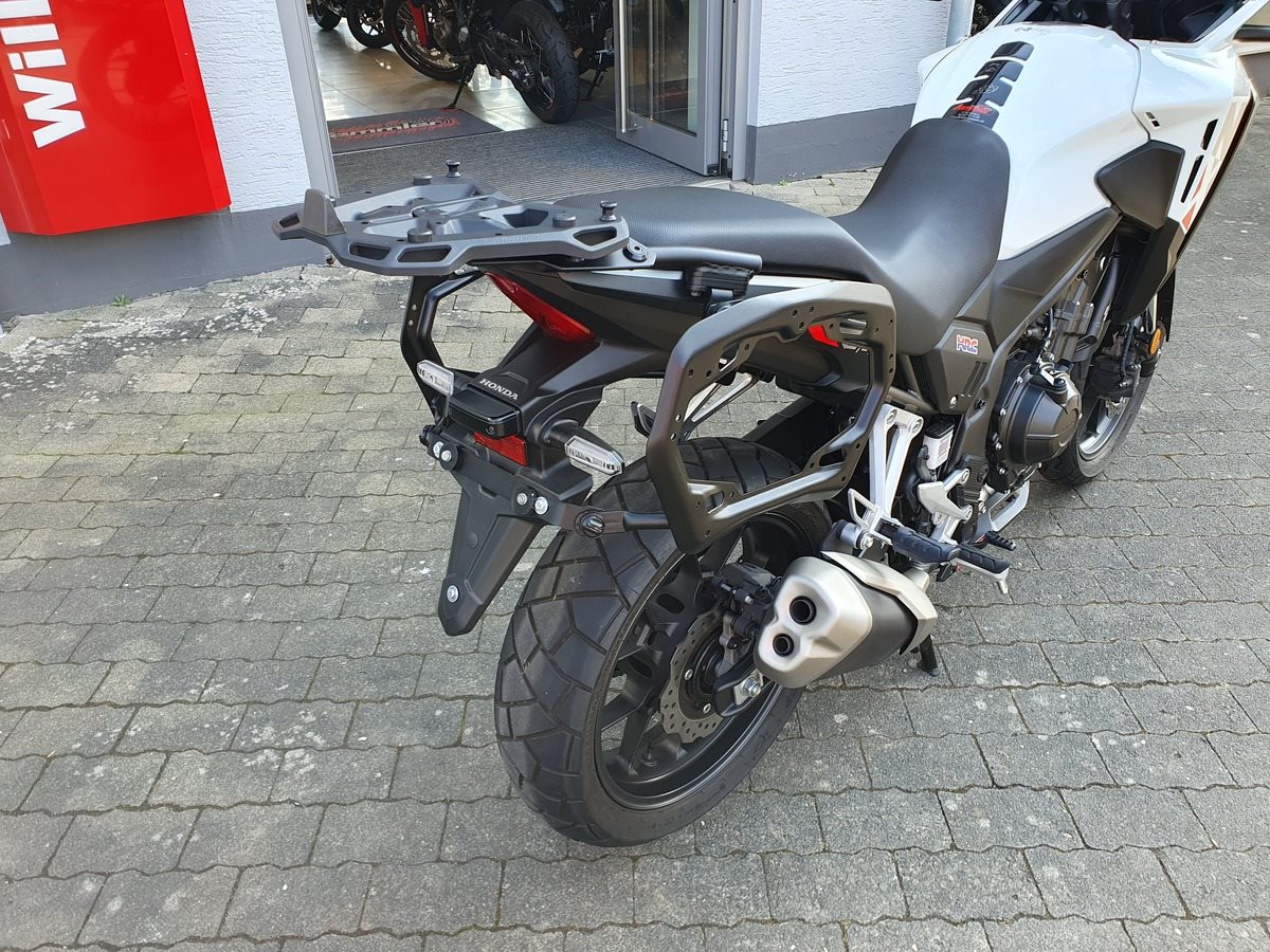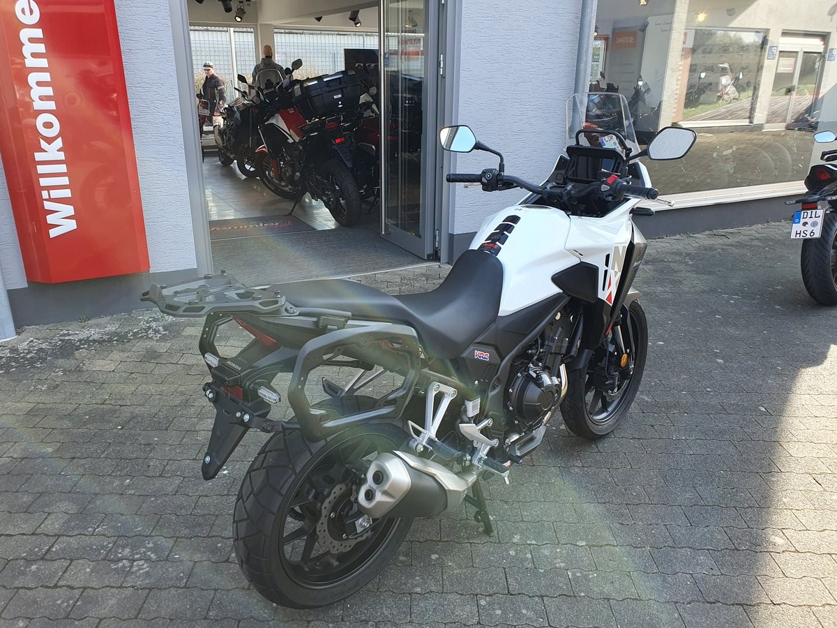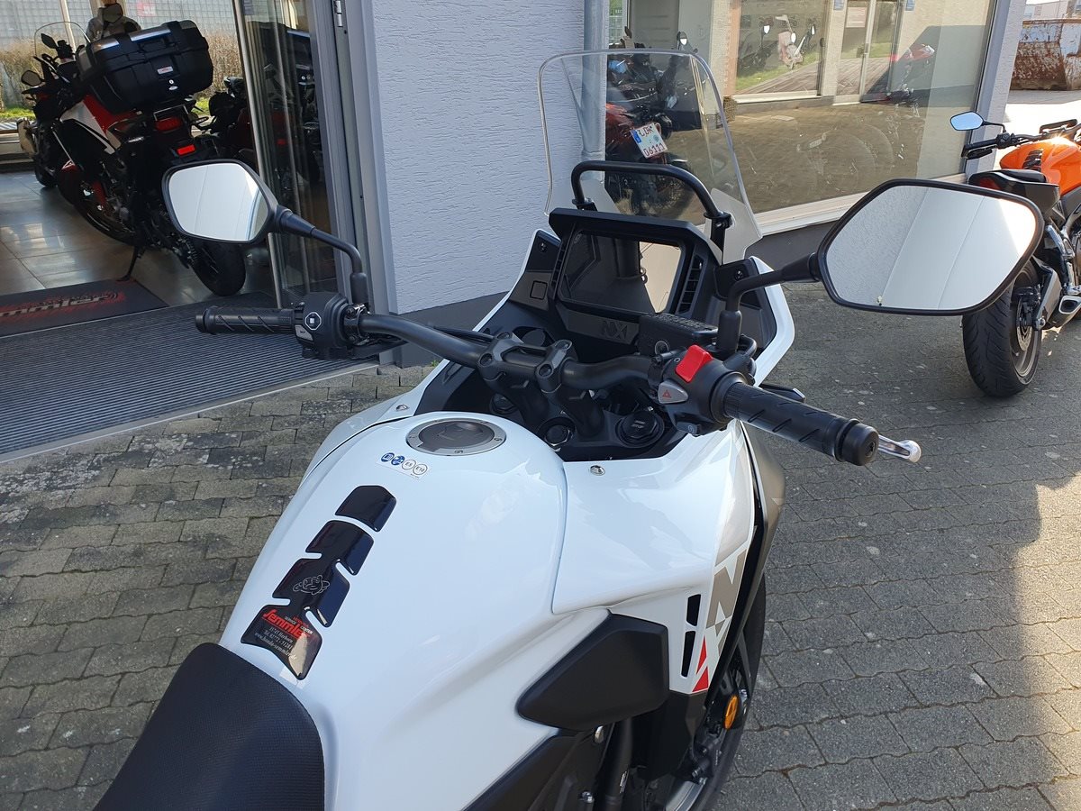 Honda NX500 MY2024 mit 5 Zoll TFT Display und Honda RoadSync-Konnektivität in Horizon White aus 1. Hand. 48 PS Klasse passend für den A2 Führerschein. Die NX500 ist Scheckheftgepflegt und wurde zusätzlich mit einem Hauptständer, einer USB Dose im Cockpit und SW-Motech Pro Seitenträgern und Street Rack mit Adapterplatte ausgestattet. Wir haben einen Service durchgeführt und der TÜV wird bei Verkauf neu gemacht.