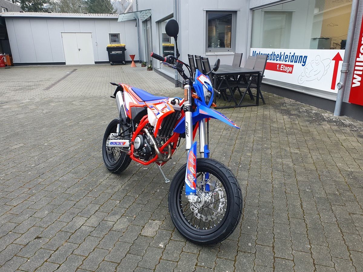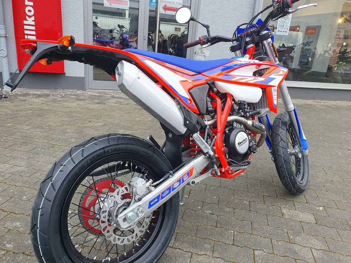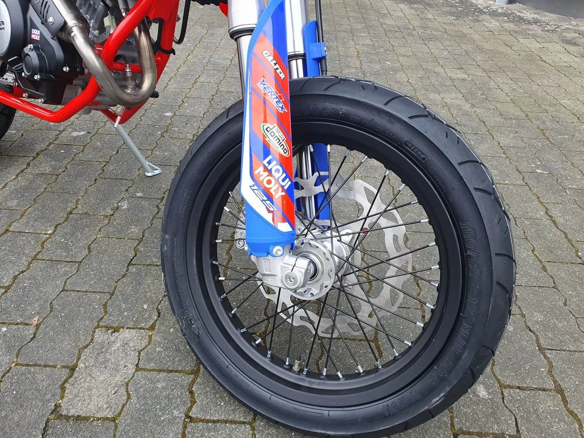Beta RR 125 R-Model 4 Takter Supermoto in blau mit Speichenfelgen Modelljahr 2025 - Neufahrzeug 0km sofort lieferbar! Steht bei uns im Laden bereit.