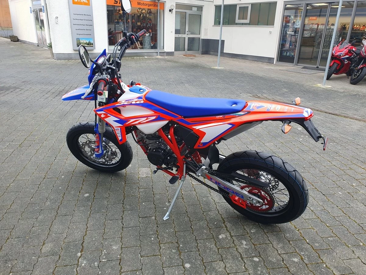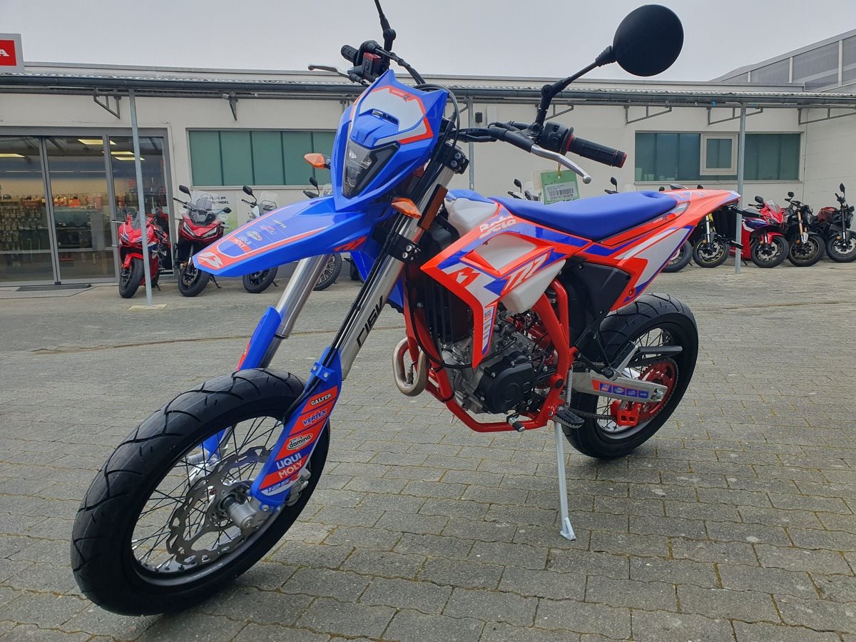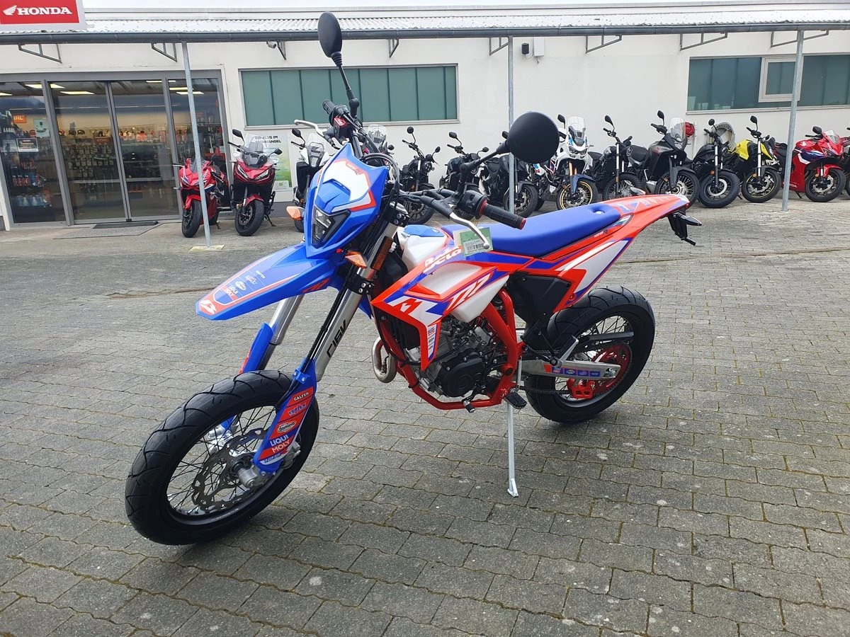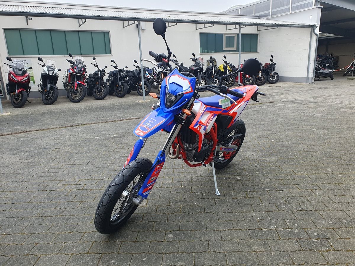 Beta RR 125 R-Model 4 Takter Supermoto in blau mit Speichenfelgen Modelljahr 2025 - Neufahrzeug 0km sofort lieferbar! Steht bei uns im Laden bereit.