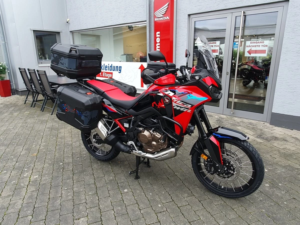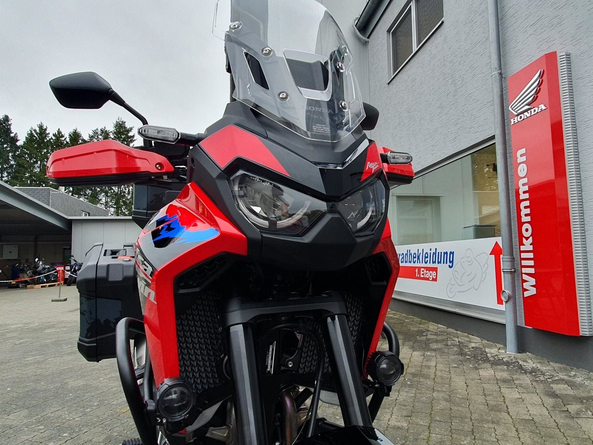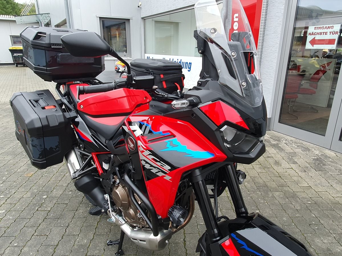 Honda CRF1100 Africa Twin als Schalter in Grand Prix Red. Jede Menge Zubehör verbaut! Wir haben alles was für Dich als Reiselustiger Motorradfahrer wichtig ist an der Africa Twin verbaut. Wenn noch was fehlen sollte, kein Problem auch das bekommen wir hin!