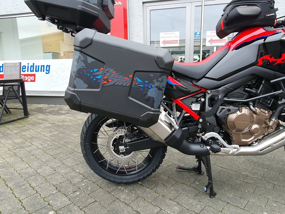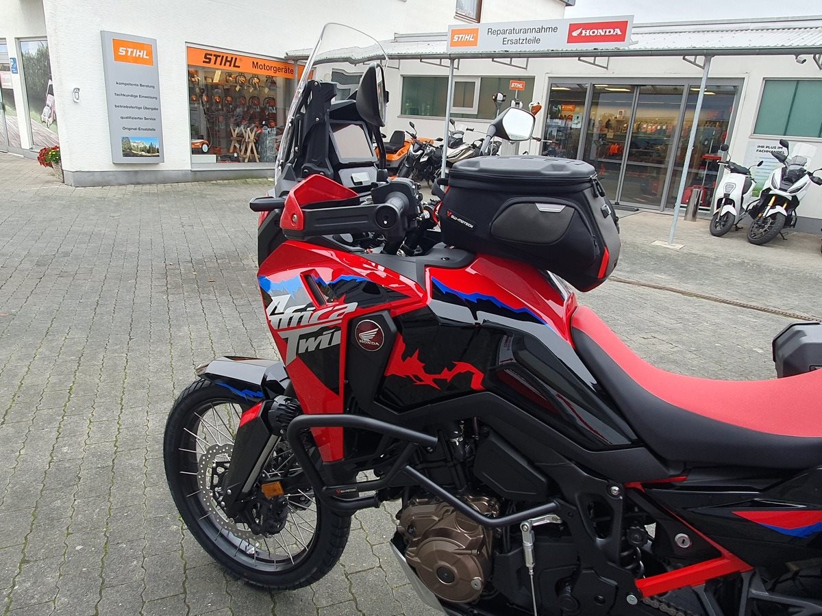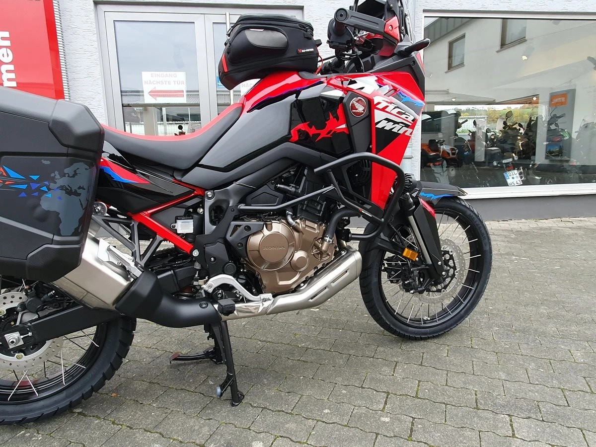 Honda CRF1100 Africa Twin als Schalter in Grand Prix Red. Jede Menge Zubehör verbaut! Wir haben alles was für Dich als Reiselustiger Motorradfahrer wichtig ist an der Africa Twin verbaut. Wenn noch was fehlen sollte, kein Problem auch das bekommen wir hin!