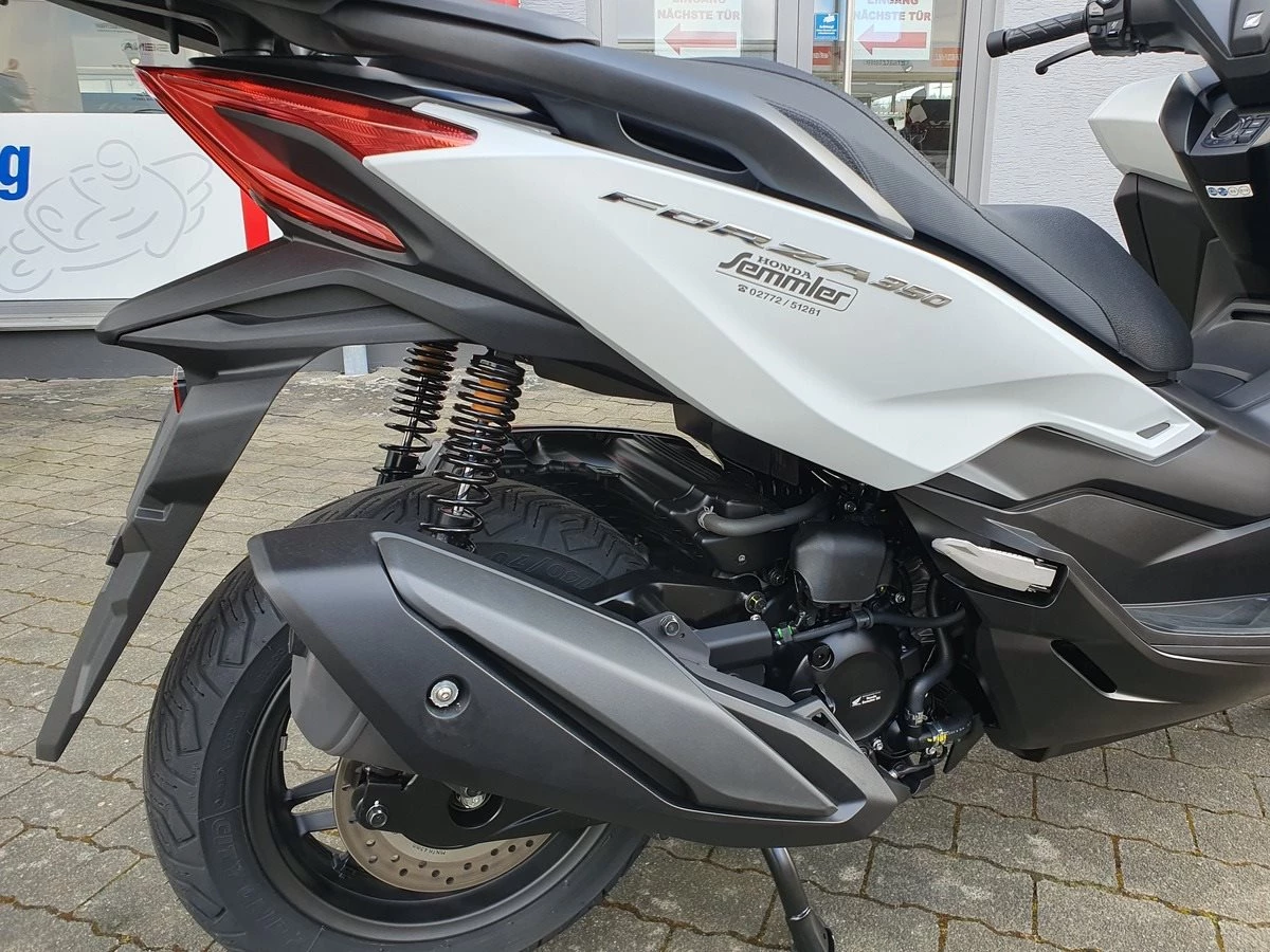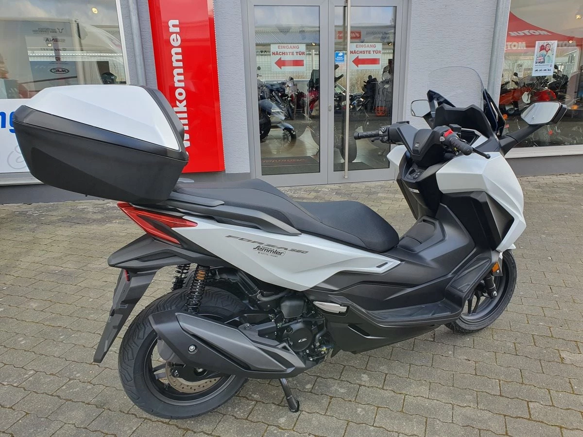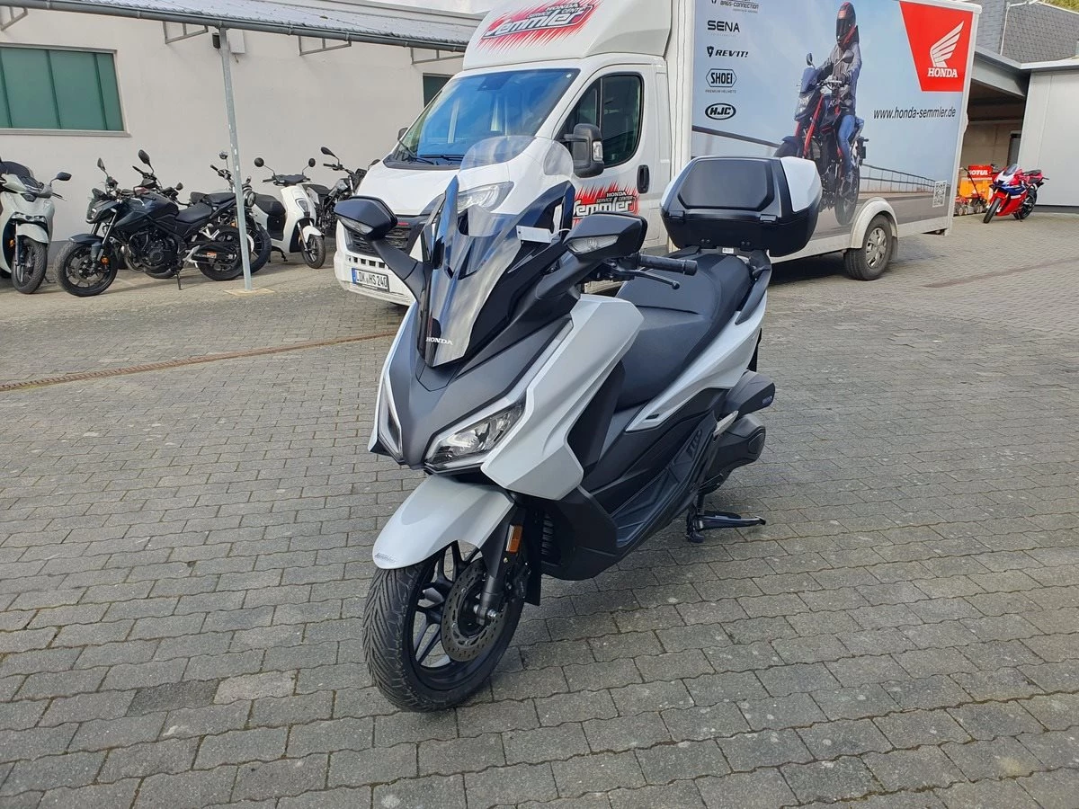 Honda Forza 350 NSS 350 in Matt Pearl Cool White! Neues Modelljahr 2025 mit TFT Display ! Der Forza hat ABS, ein elektrisch einstellbares Windschild und wird Seienmäßig mit Smart Key Top Case geliefert. Der Roller ist auf Lager und sofort verfügbar !
