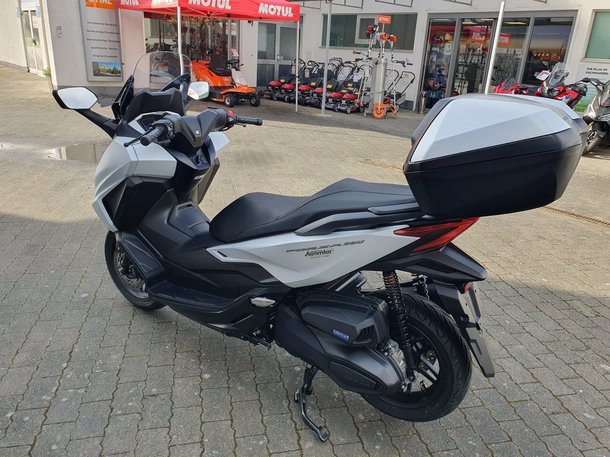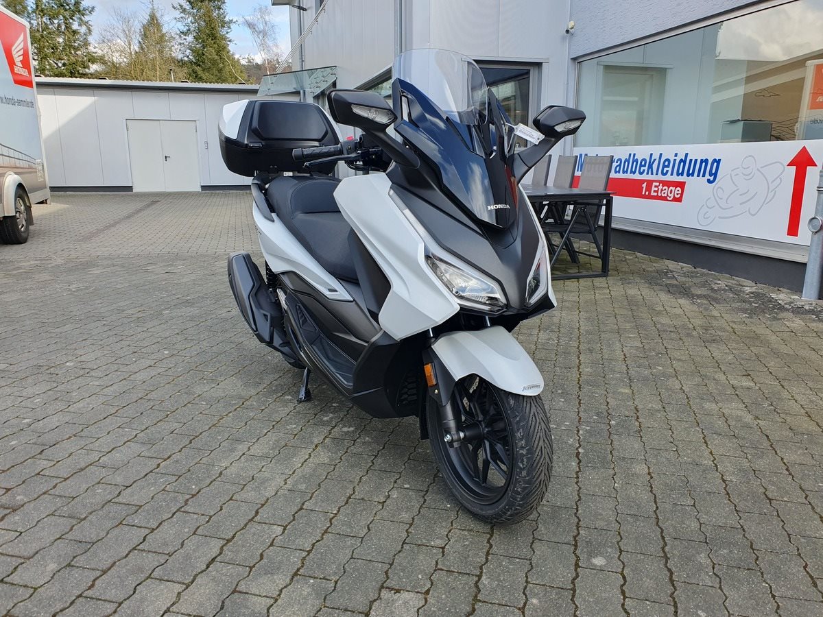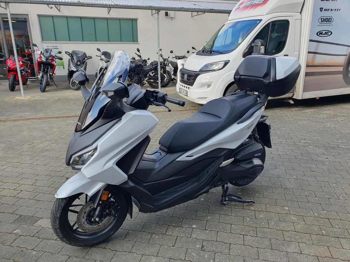 Honda Forza 350 NSS 350 in Matt Pearl Cool White! Neues Modelljahr 2025 mit TFT Display ! Der Forza hat ABS, ein elektrisch einstellbares Windschild und wird Seienmäßig mit Smart Key Top Case geliefert. Der Roller ist auf Lager und sofort verfügbar !
