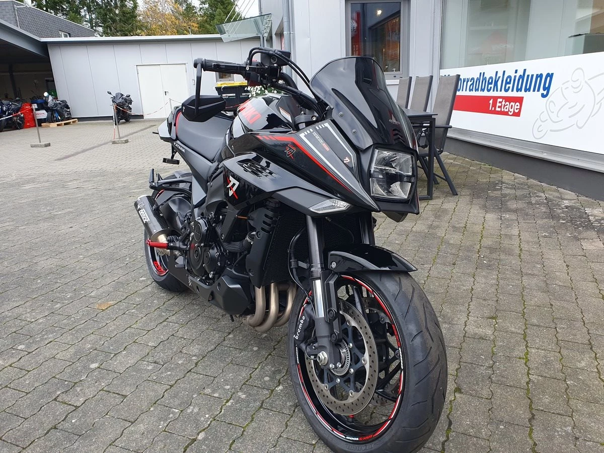The Suzuki GSX-S1000S Katana is based on the naked GSX-S1000 and therefore impresses with all the quality and inner values of a typical Japanese machine. The Katana also has what it takes to become a visual classics, as it is the first to take up the style of the 1980s. The riding position is surprisingly comfortable and the height of the handlebars allows for comfortable control. With its low front fairing, it may not be a true touring machine, but it can certainly pass as a crossover bike that combines retro, naked and touring perfectly.