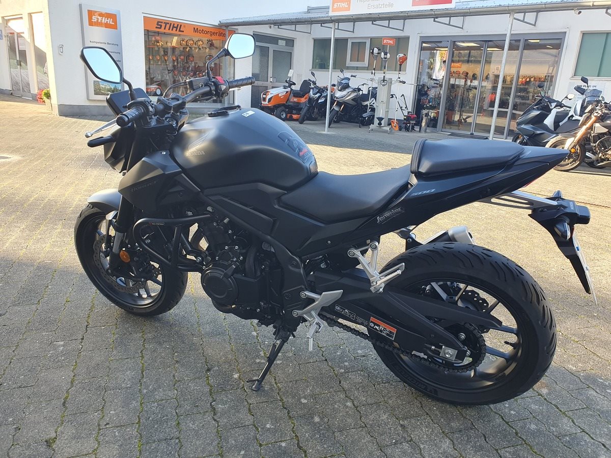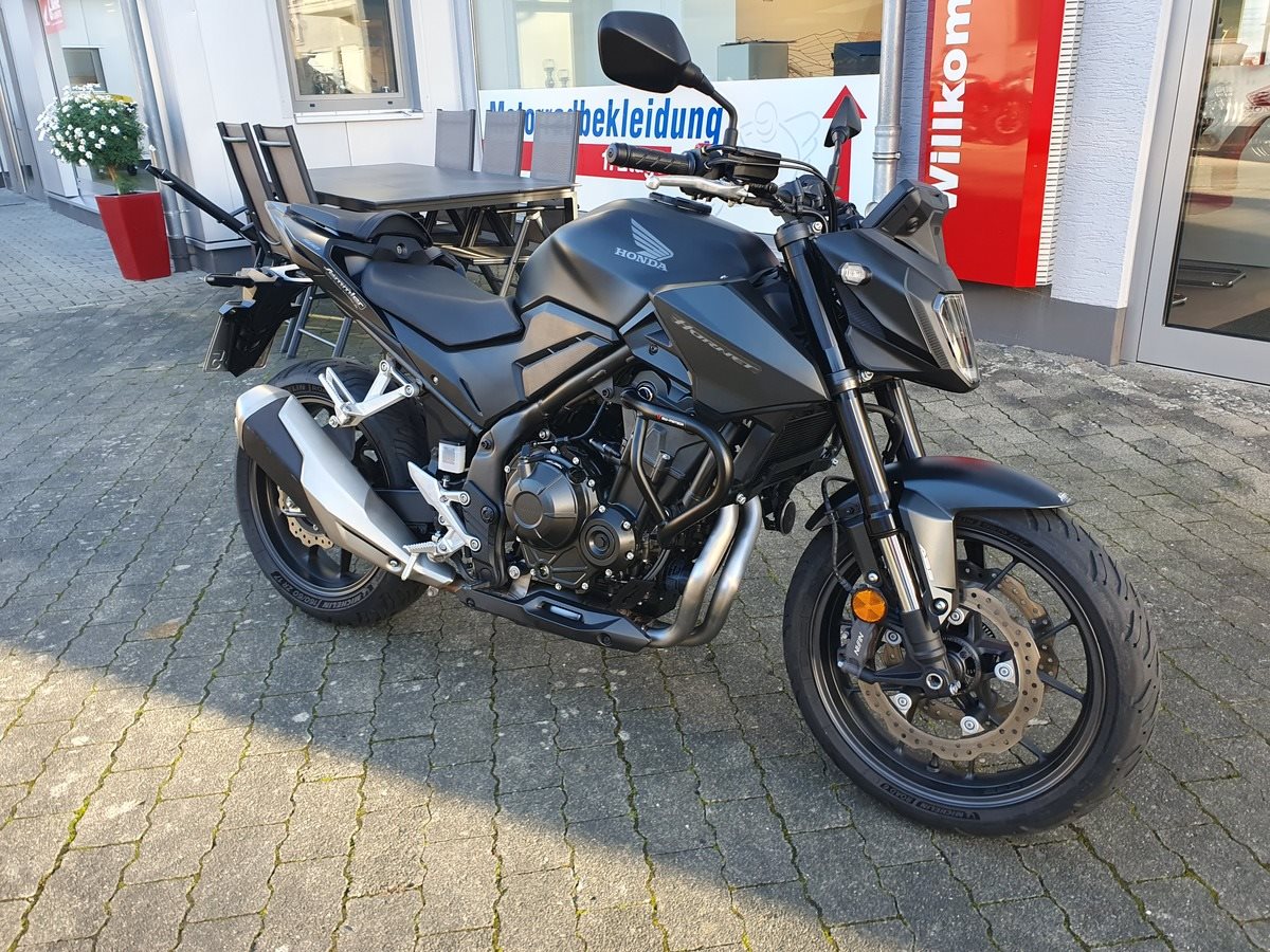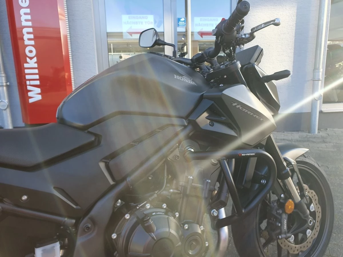 Honda CB500 HORNET Vorführmaschine aus 1. Hand. Mit 5 Zoll TFT Display und Honda RoadSync-Konnektivität in Matt Gunpowder Black SOFORT VERFÜGBAR! - 48 PS Klasse passend für den A2 Führerschein. Mit SW-Motech Sturzbügeln und Pro Tankring. Die Maschine hat an der linken Seite ein paar Macken / Kratzer. Bitte den Bildern entnehmen.