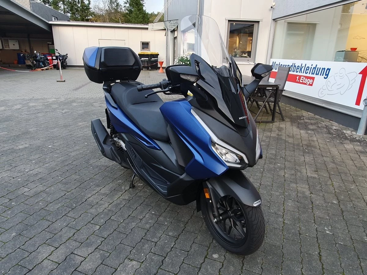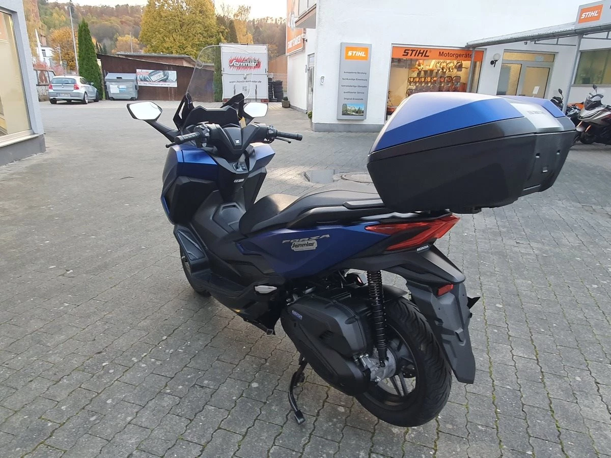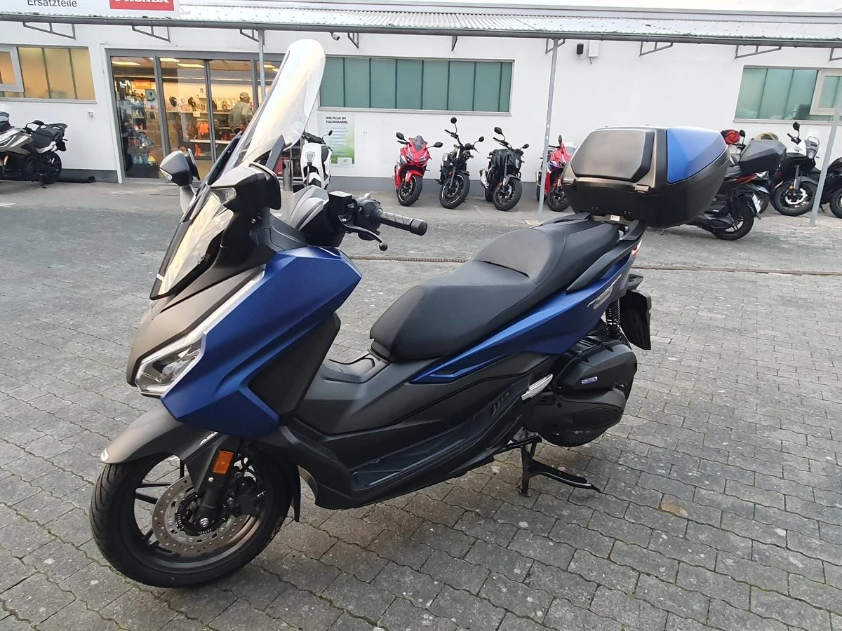 Honda Forza 125 NSS 125 aus 1. Hand in matt blau. Der Forza hat ABS und wird Seienmäßig mit Smart Key Top Case geliefert. Der Roller ist in einwandfreiem Zustand und Scheckheftgepflegt. Er hat eine frische Inspektion bekommen und hat noch TÜV & Werksgarantie bis 08/2026.