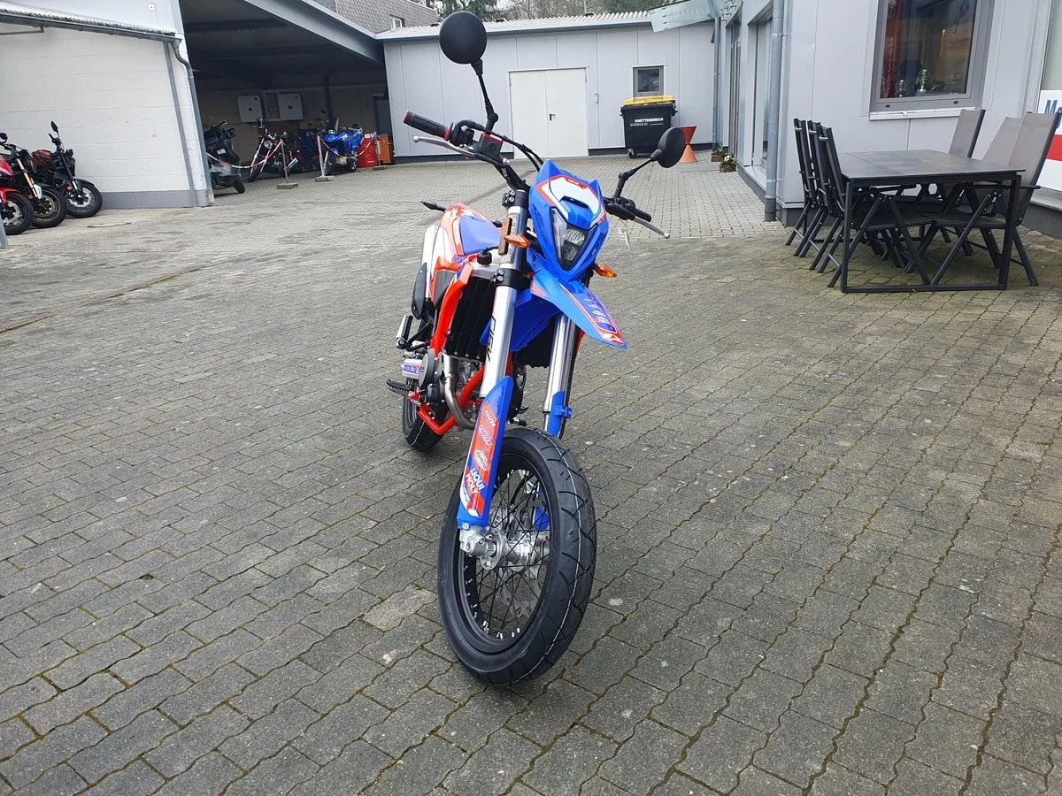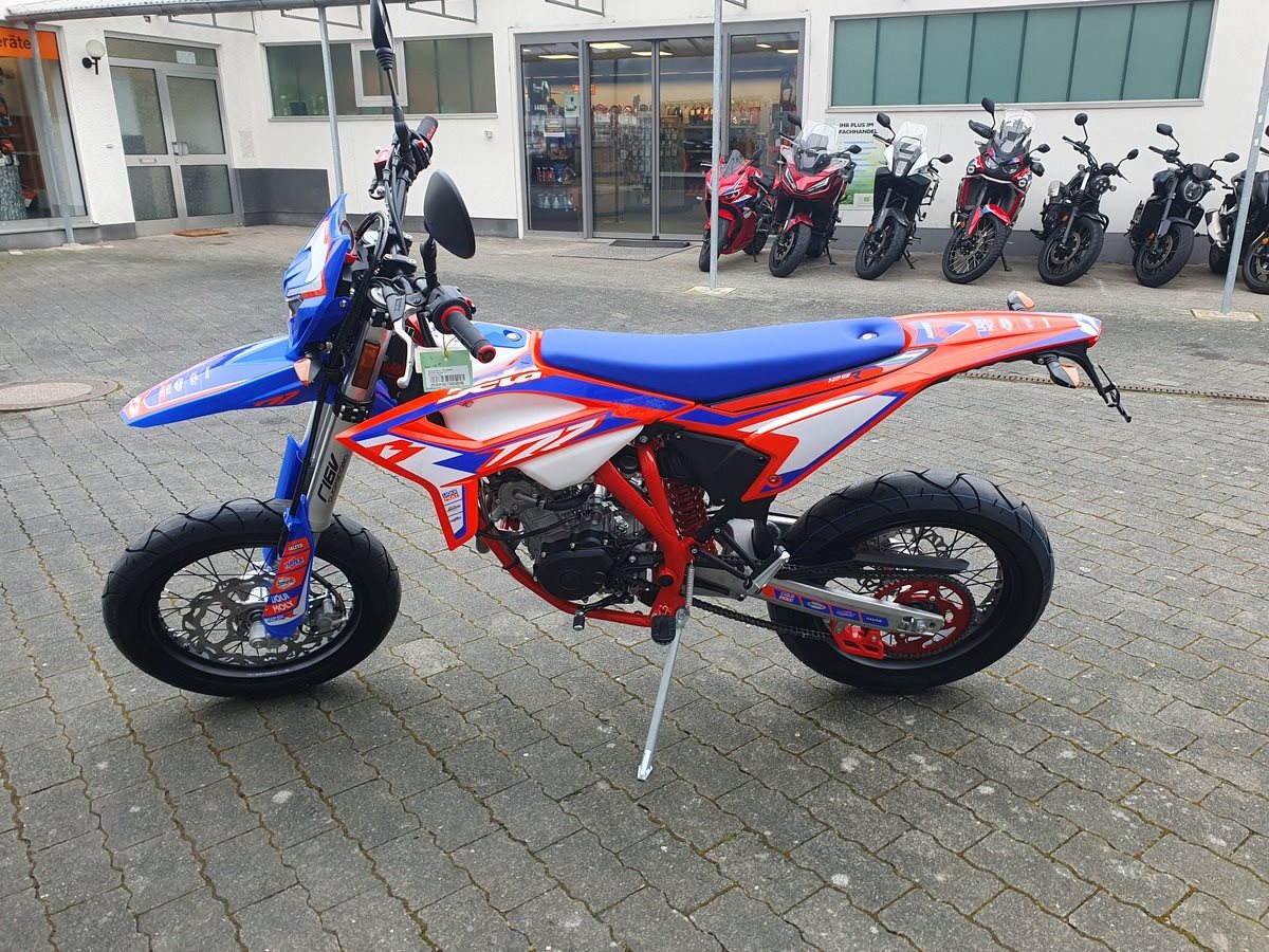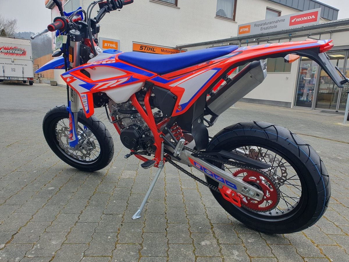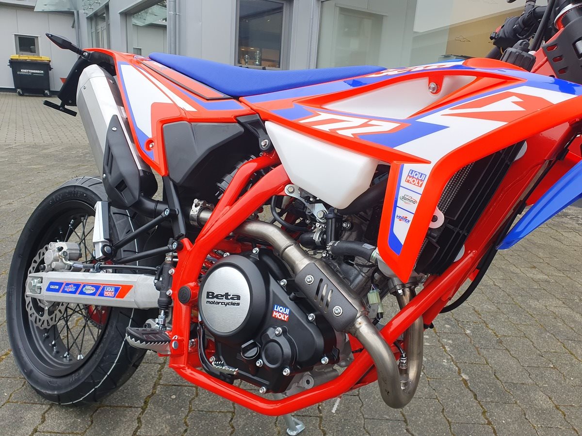Beta RR 125 R-Model 4 Takter Supermoto in blau mit Speichenfelgen Modelljahr 2025 - Neufahrzeug 0km sofort lieferbar! Steht bei uns im Laden bereit.
