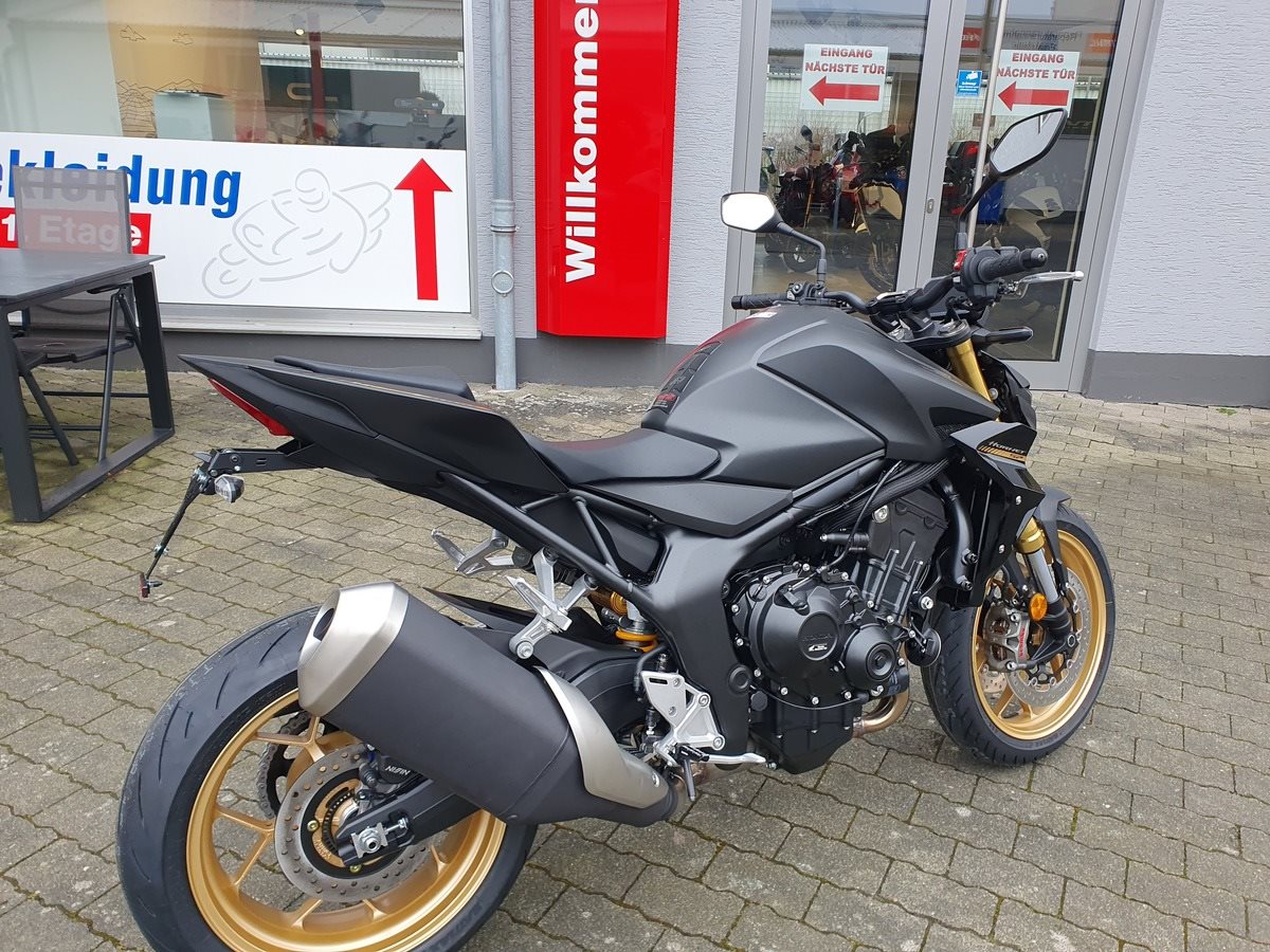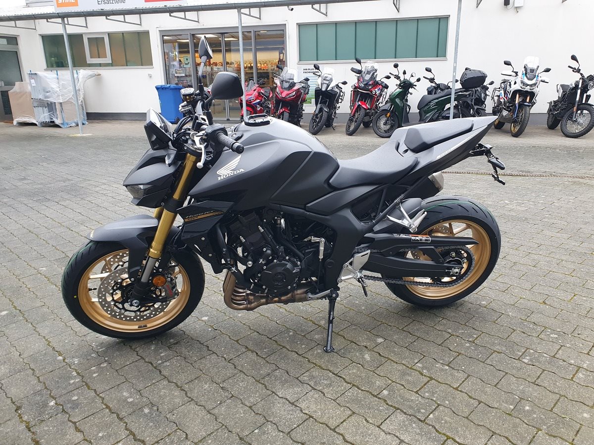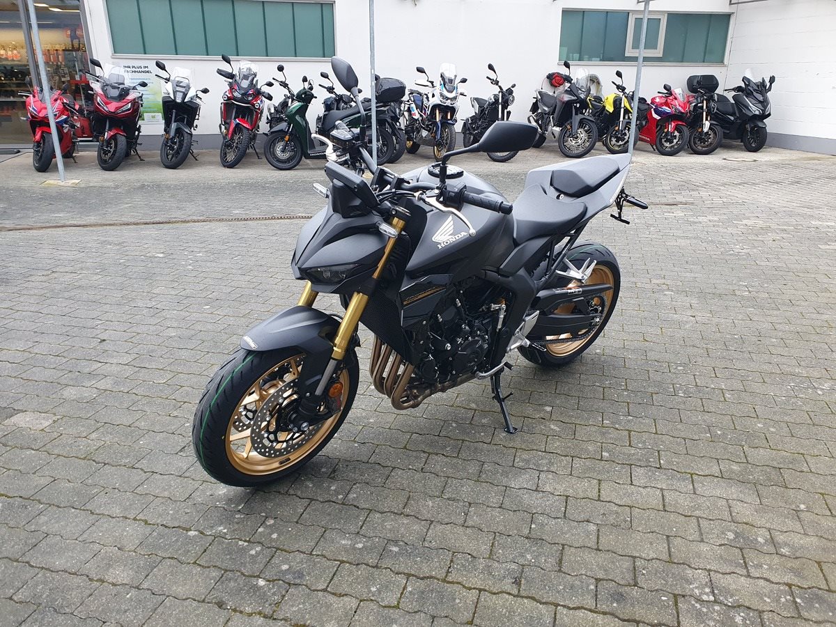 Die neue CB1000 Hornet SP mit ihrem Vierzylindermotor ist ein erstklassiges Naked Bike, das den Asphalt zum Glühen bringt. Throttle By Wire sorgt für präzise Kontrolle, während das Fahrwerk mit der einstellbaren SHOWA 41mm SFF-BP Upside-Down-Gabel und dem Öhlins TTX36 Pro Link Aufhängung ausgestattet ist. Die unverfälschte, aggressive Streetfighter-Attitüde wird durch einen markanten LED-Doppelscheinwerfer unterstrichen. Der 5-Zoll-TFT-Farbbildschirm und die Honda RoadSync-Konnektivität sorgen für die nötigen Informationen. Kann es losgehen?
