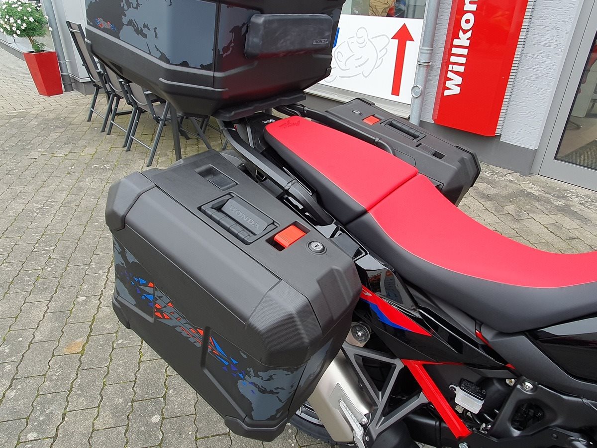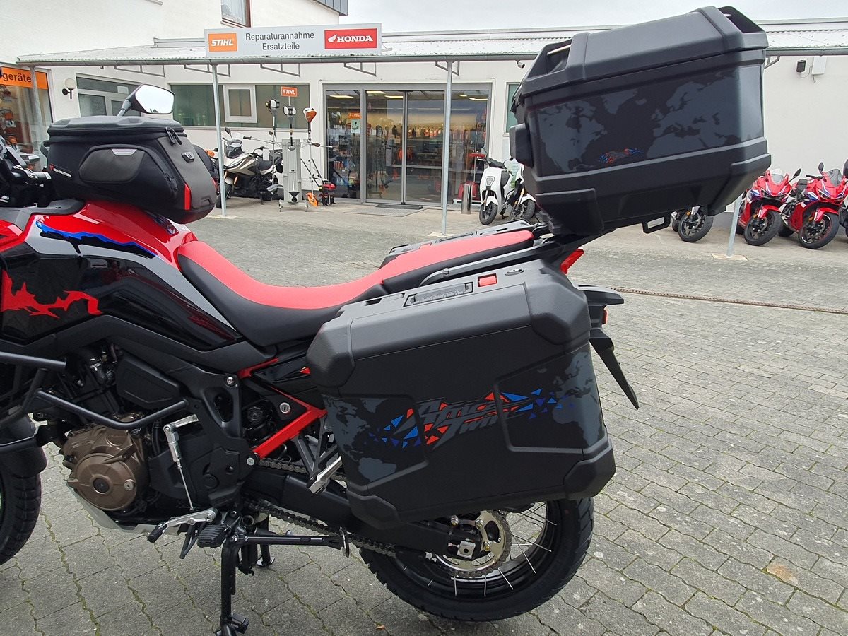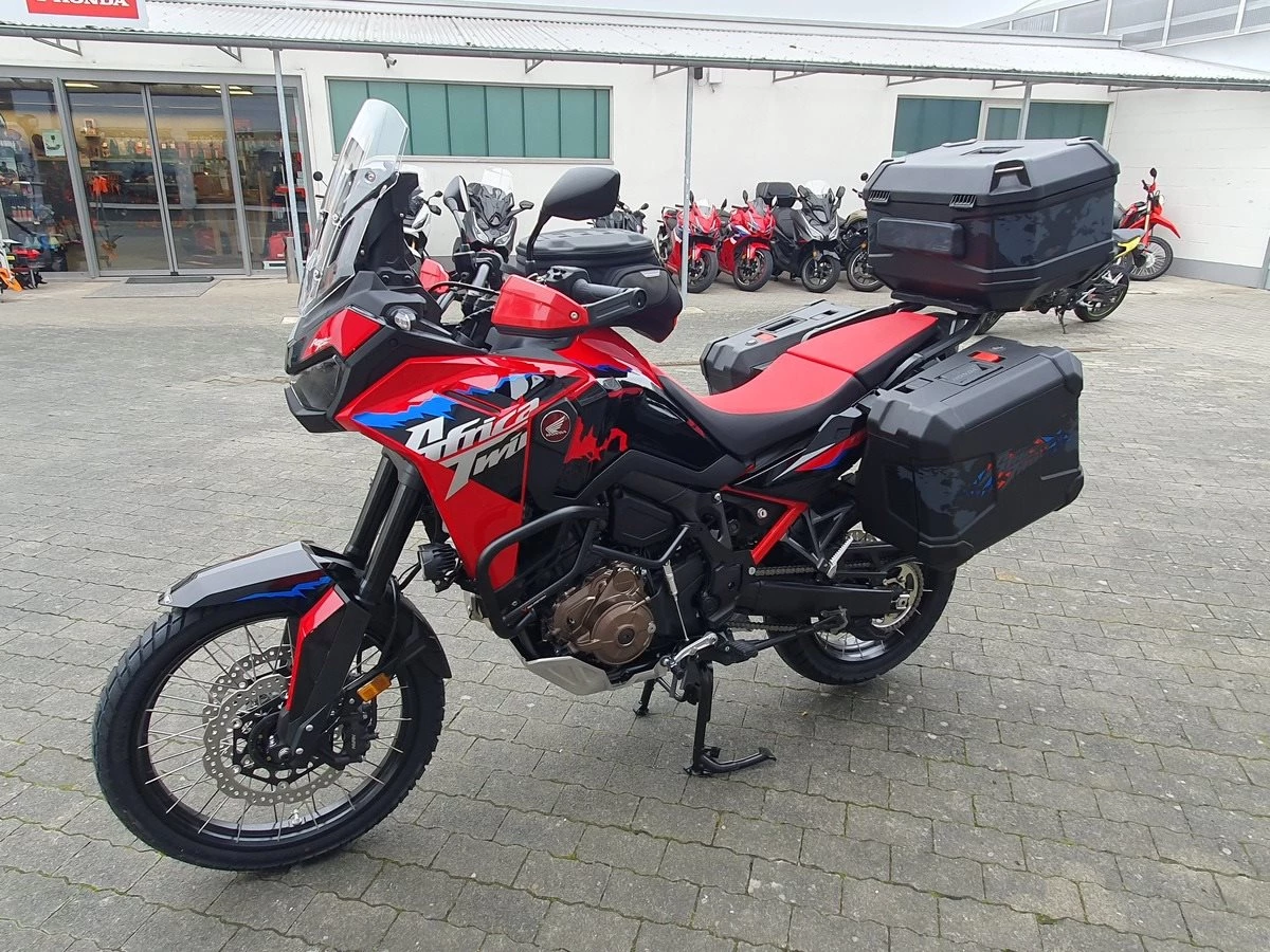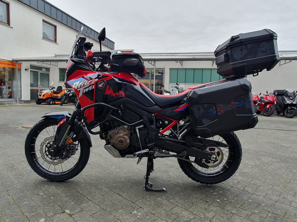 Honda CRF1100 Africa Twin als Schalter in Grand Prix Red. Jede Menge Zubehör verbaut! Wir haben alles was für Dich als Reiselustiger Motorradfahrer wichtig ist an der Africa Twin verbaut. Wenn noch was fehlen sollte, kein Problem auch das bekommen wir hin!