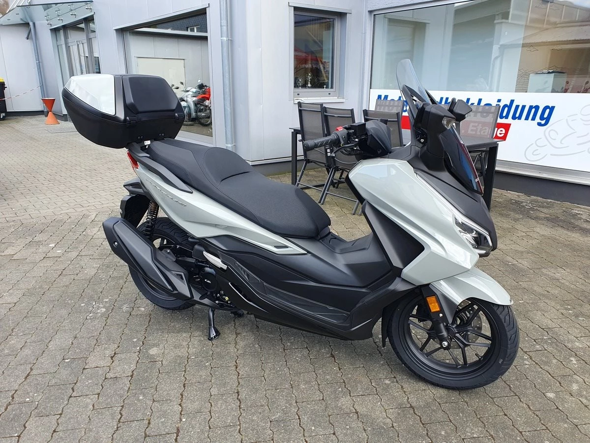 Honda Forza 125 NSS 125 in Pearl Falcon Grau! Neues Modelljahr mit TFT Display ! Der Forza hat ABS, ein elektrisch einstellbares Windschild und wird Seienmäßig mit Smart Key Top Case geliefert. Der Roller ist auf Lager und sofort verfügbar !